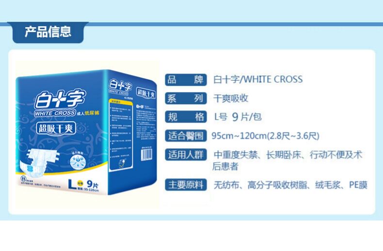 白十字 Взрослые подгузники L9 Большие воздухопроницаемые мужчины и женщины, моча без влажного ухода, подгузники мочеиспускания, подгузники