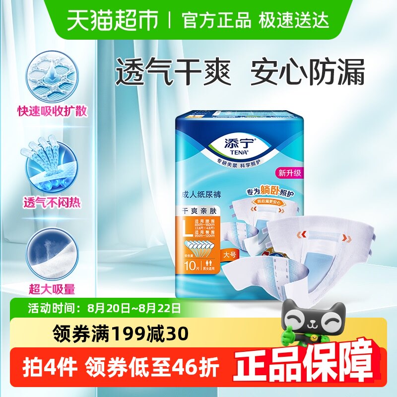 TENA/添宁 Подгузники для взрослых L размер пожилой подгузники для мужчин и женщин, сухой и удобной для поставленных брюк для доставки.