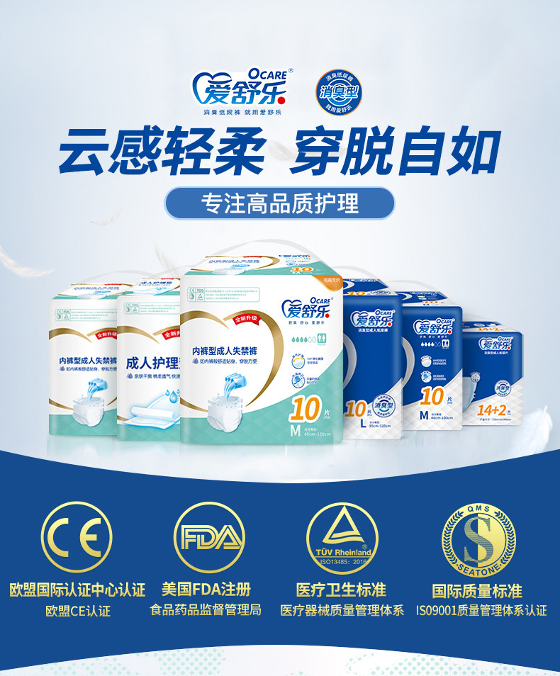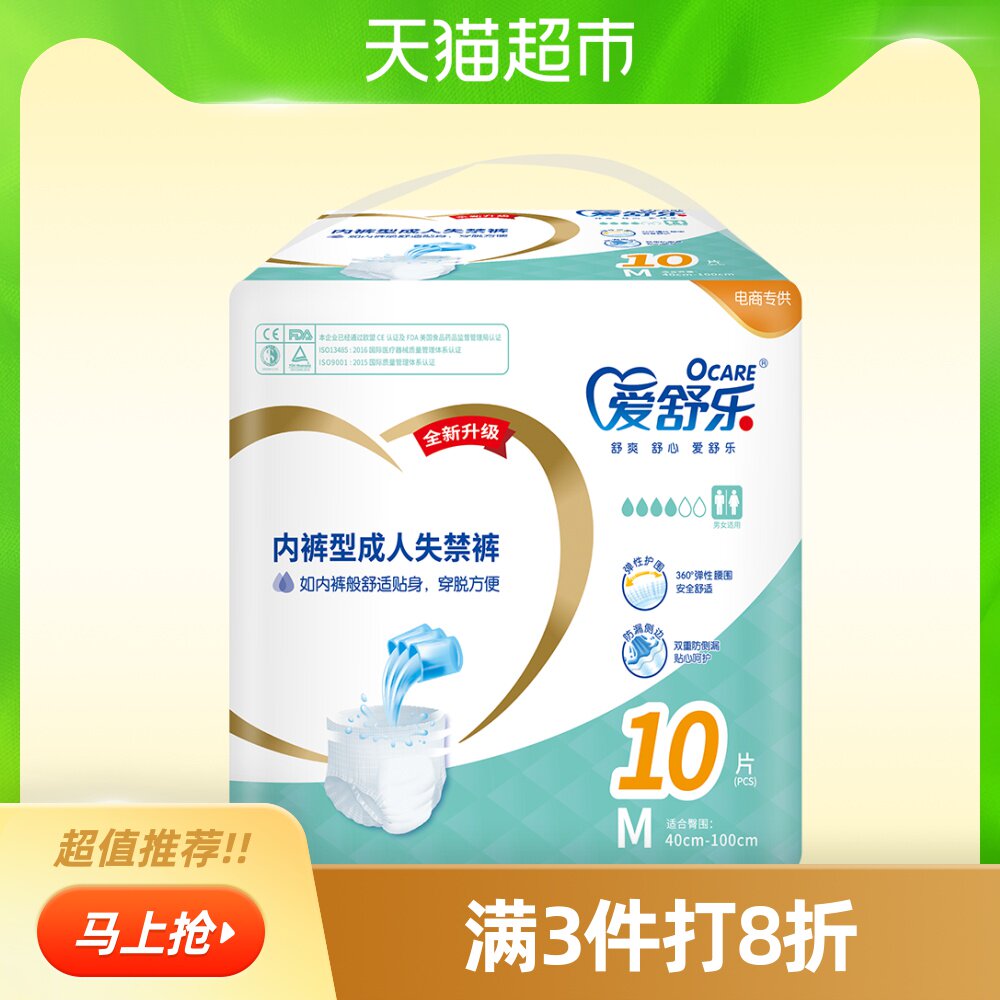AI Shule для взрослых брюк Средний M код 10 Таблетки стариков подгузники одноразовые брюки с недержанием подгузника Экономическая одежда экономическая одежда