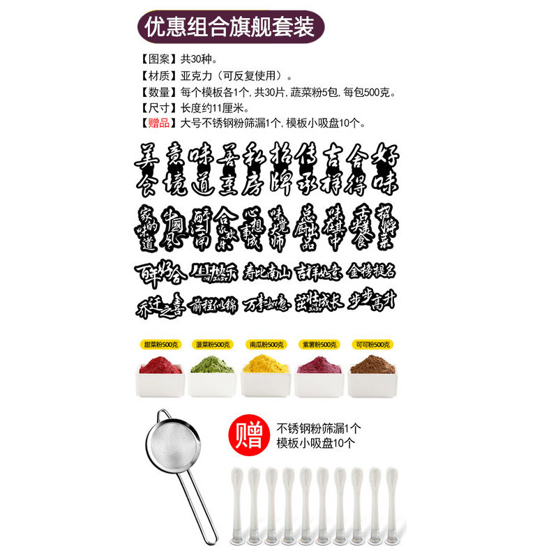 Шаблон порошка овощного порошка кухонная порошка посыпка, солевые блюда, декоративное артефакное диск украшают творческие плесени
