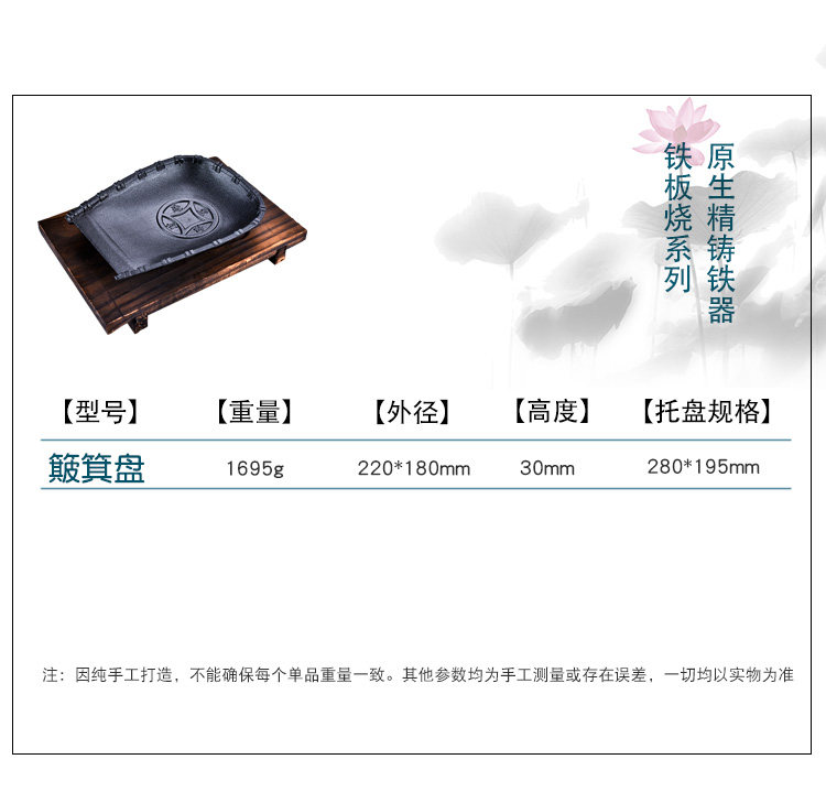 Железная тарелка измельченная корейская барбекю для барбекю -дом с округлым жареным стейком коммерческий нежигарный чугунный барбекю Пластина западного пищевого стейка из говядины.