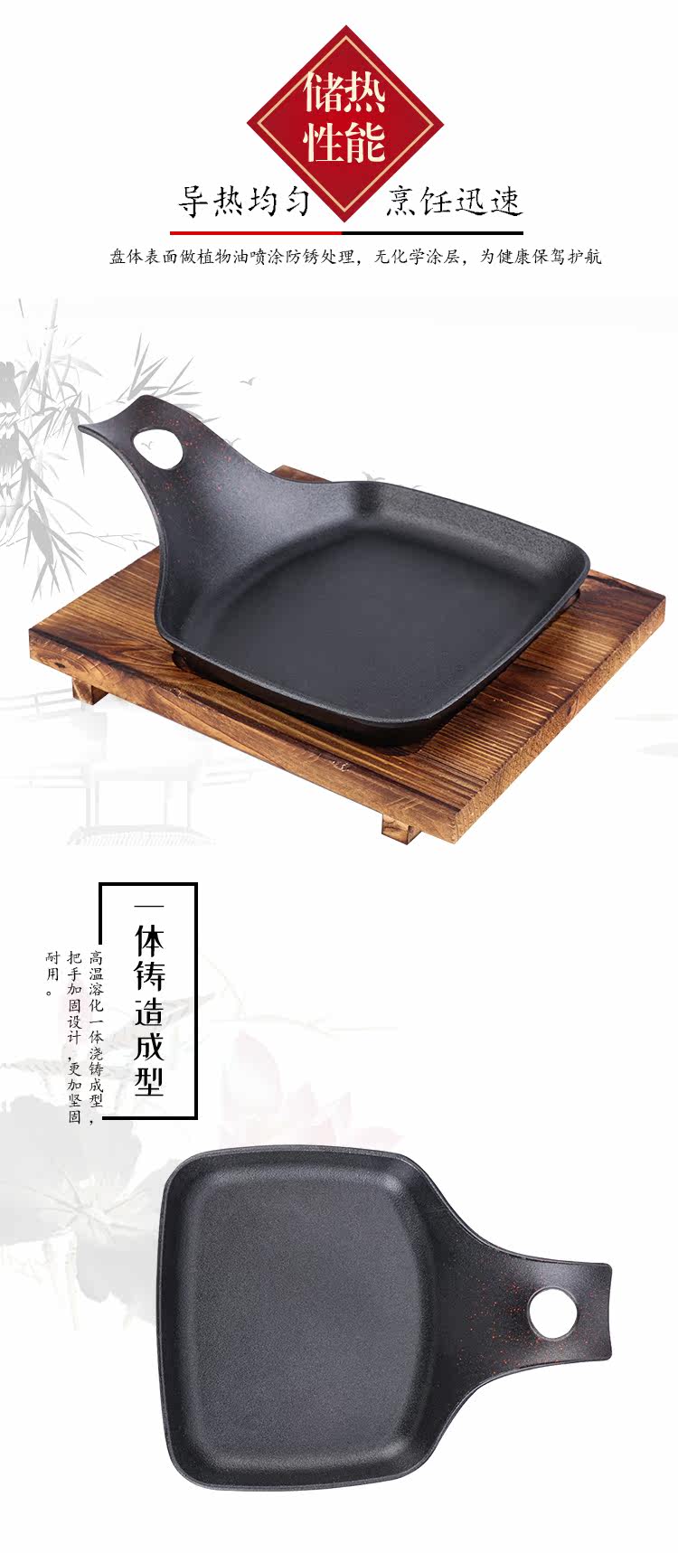 2020 Новый модный квадратный квадратный шкаф Железная пластина Жареная жареная стейк характерна коммерческая ливатедная чугунная чугунная чугунная западная корова