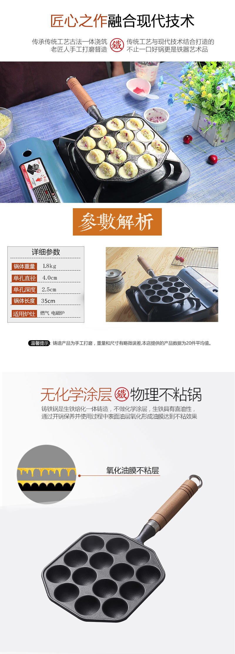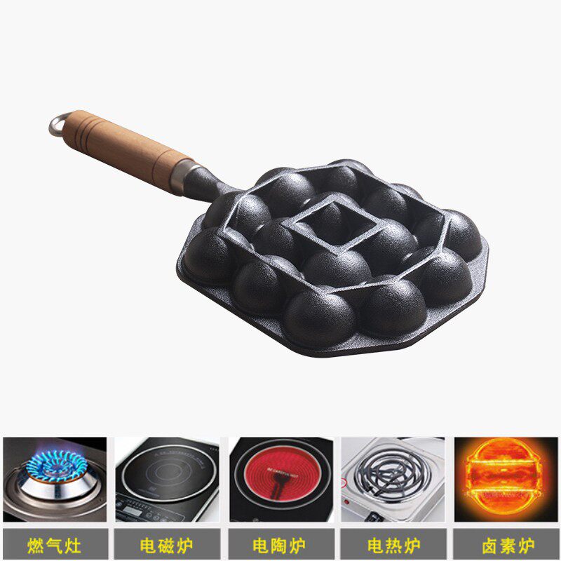 Осьминог с осью осьминога с маленькой шарикой дома чугунный противень без покрытия, жареное яичное плесень, птичье яйцо, не прилипать к сковороде