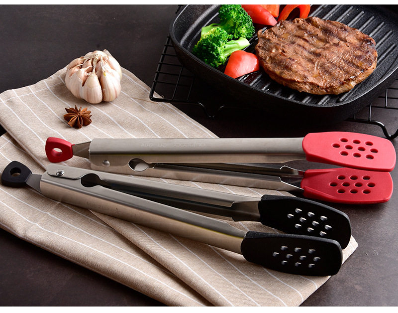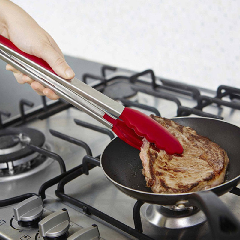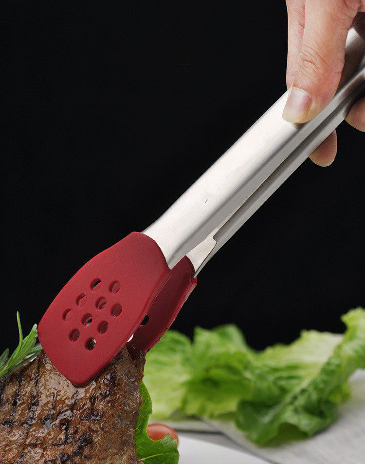 Силиконовые длинные щипцы для еды из нержавеющей стали, нержавеющая сталь AISI 304, защита от ожогов