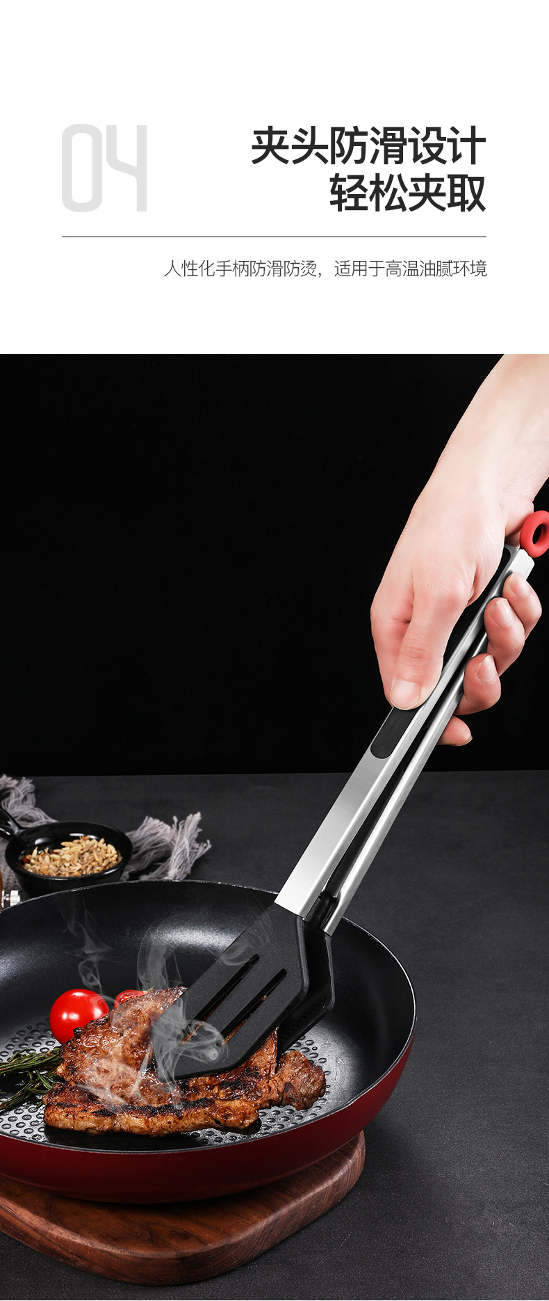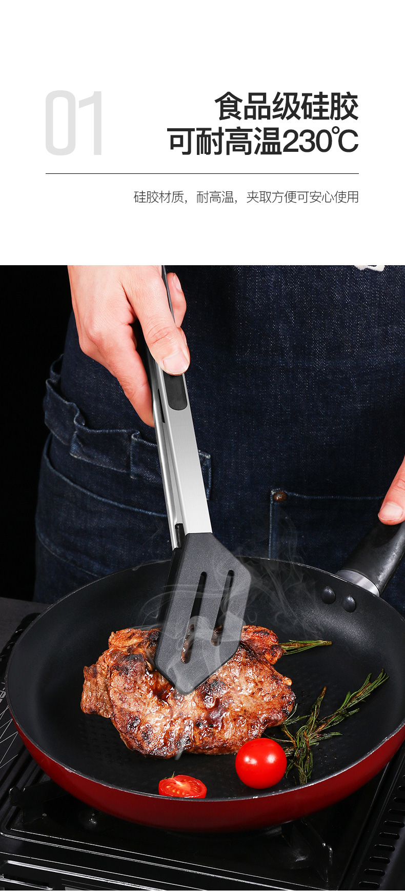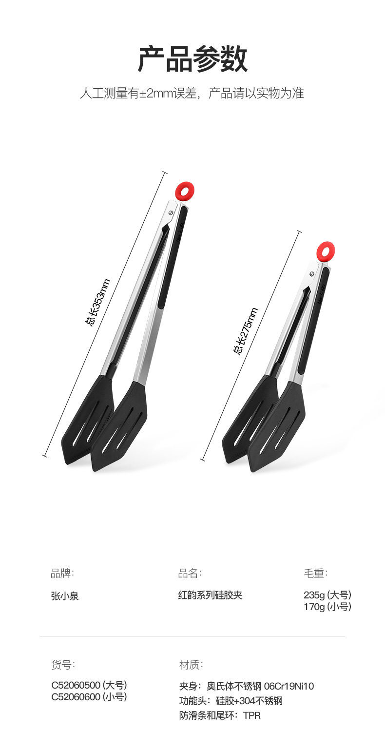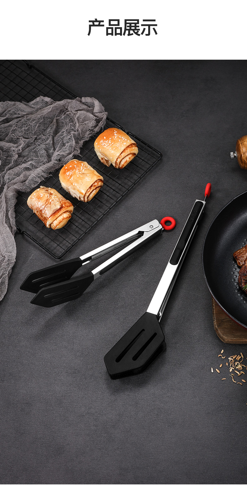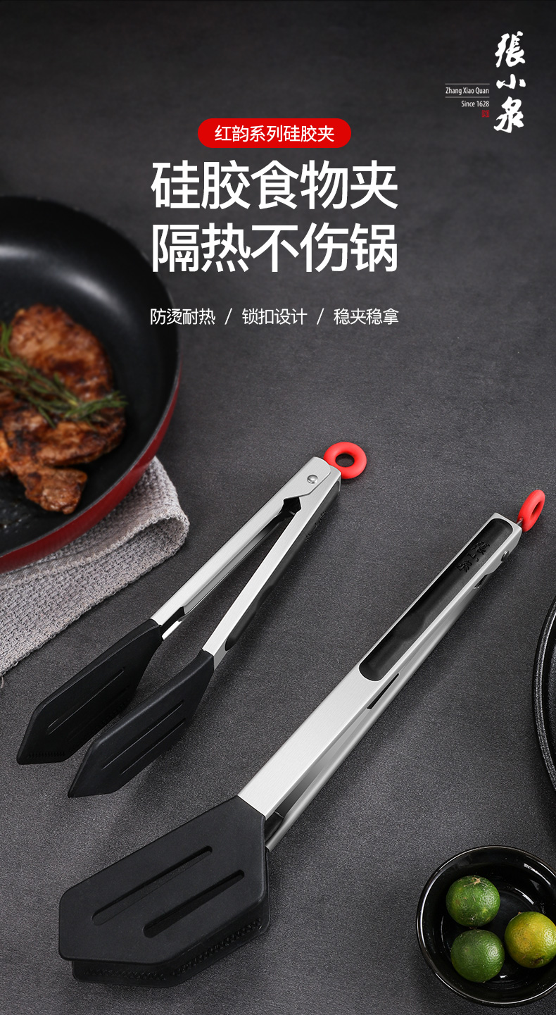 张小泉 Зажимы для еды, кухонные силиконовые зажимы для стейка, зажимы для барбекю, противоожоговые, противоскользящие, устойчивые к высоким температурам зажимы для стейка