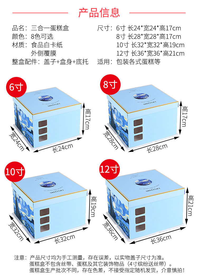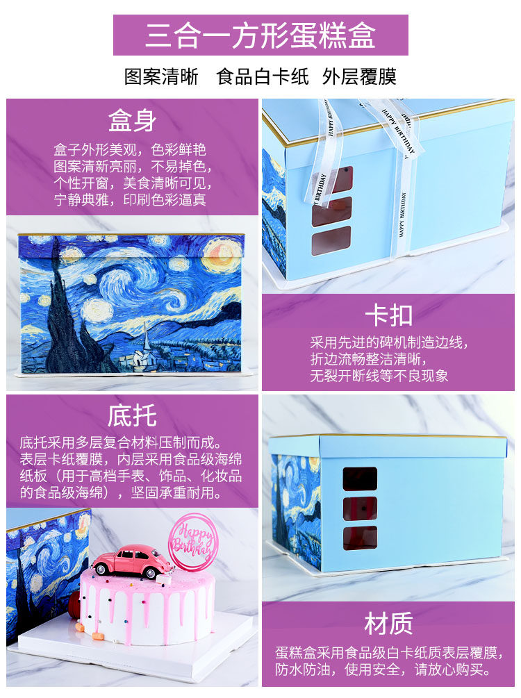 Новая тройная коробка с тортом Triple -Square 8/8/10/12/14 -INCH DITEL CAKE BOX