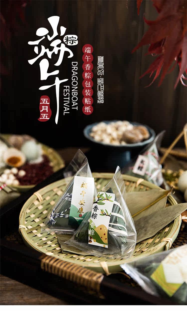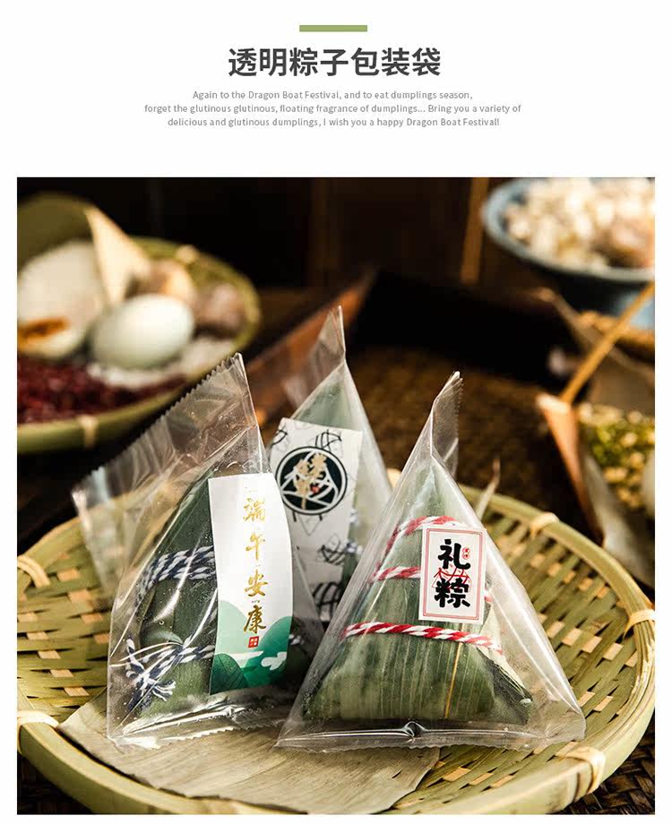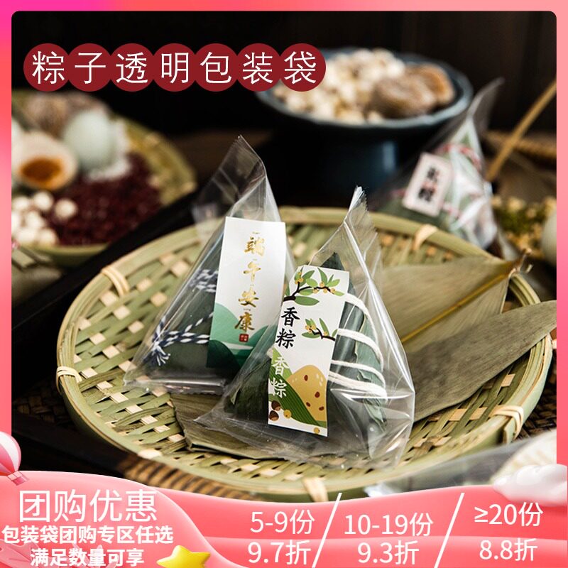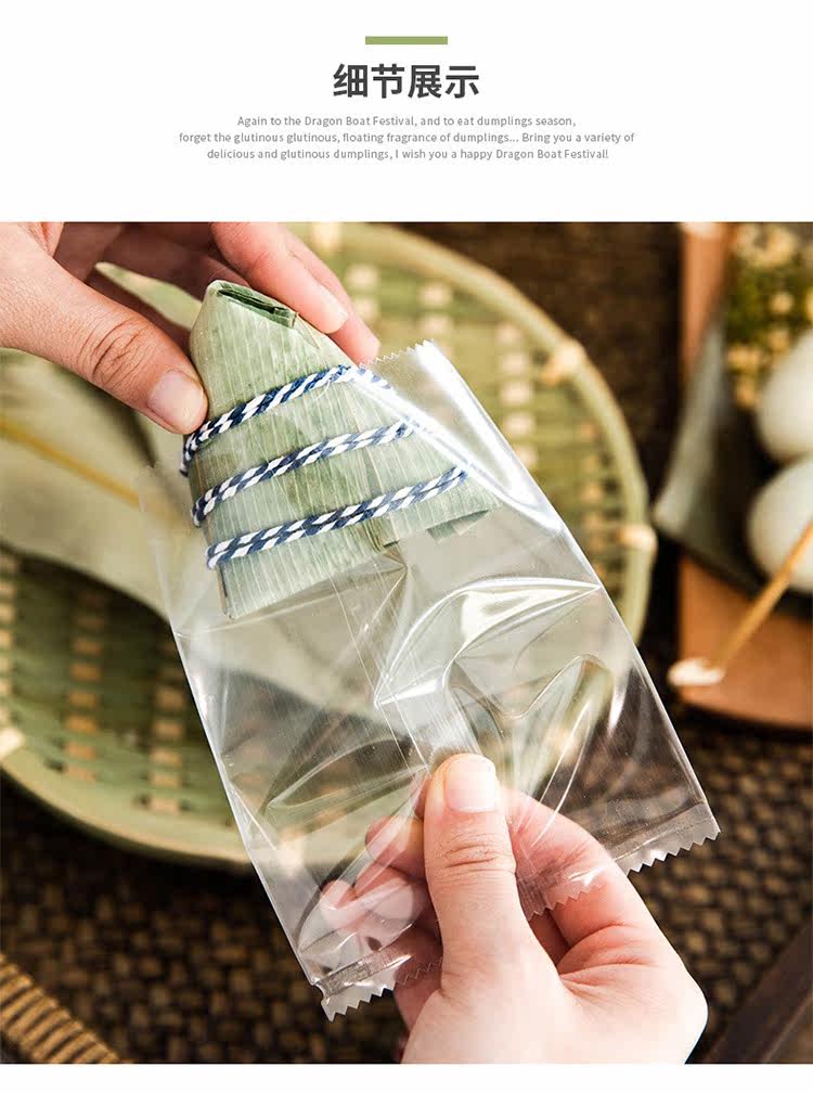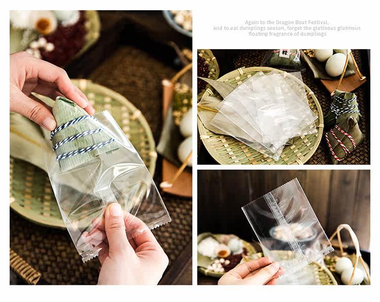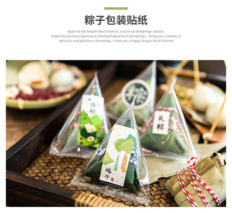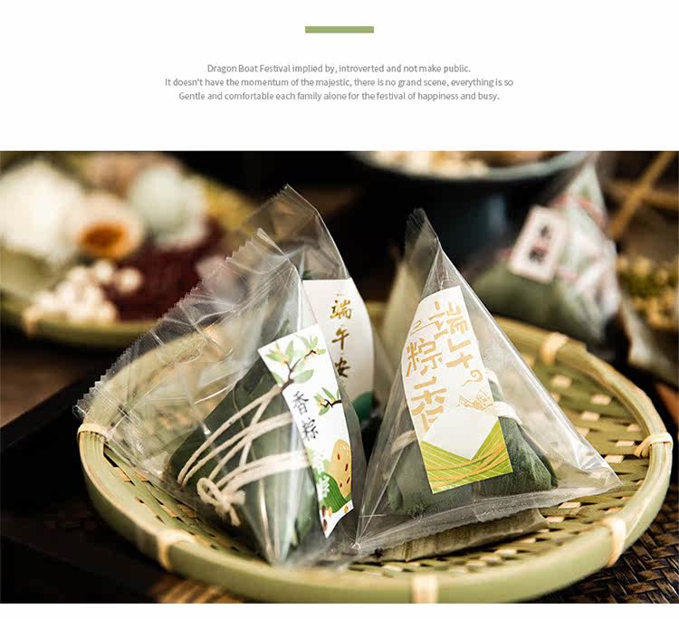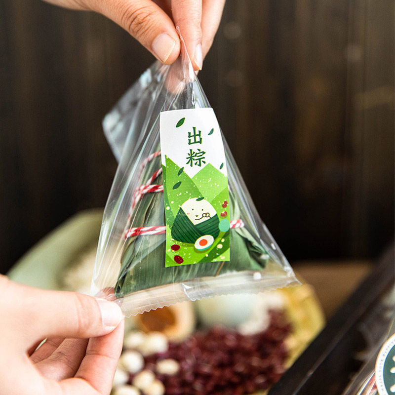 Zongzi прозрачная упаковочная сумка теплые пекарня дома сухие рисовые пельмени лист лист лист драконы лодка фестиваль галстук Блокировка пакета декоративные наклейки