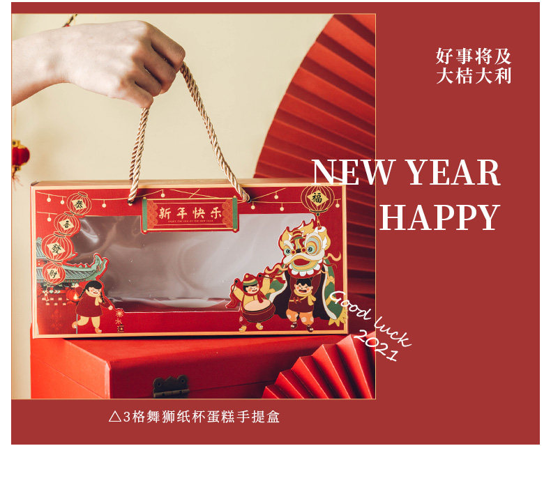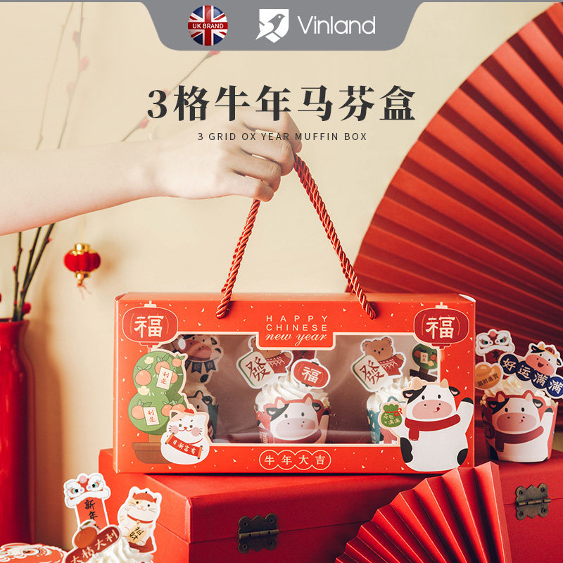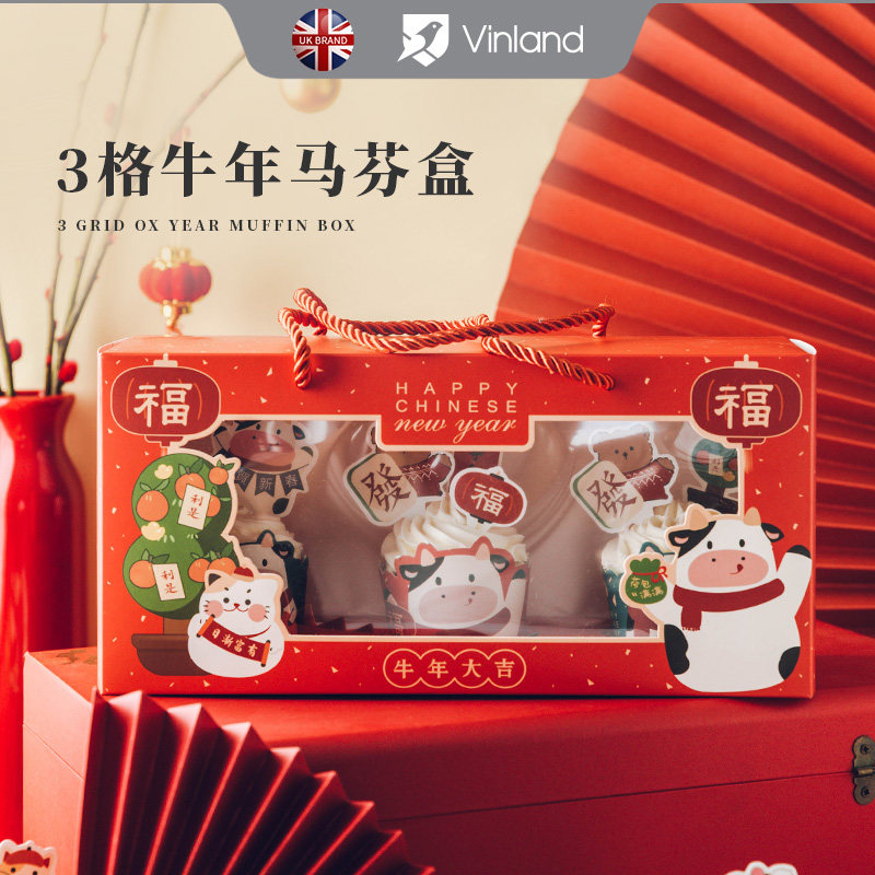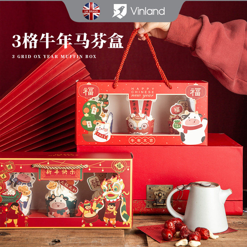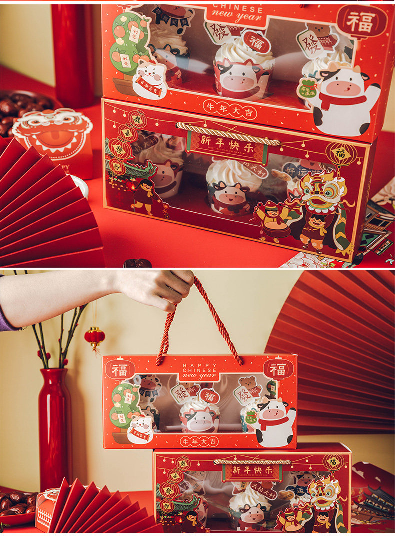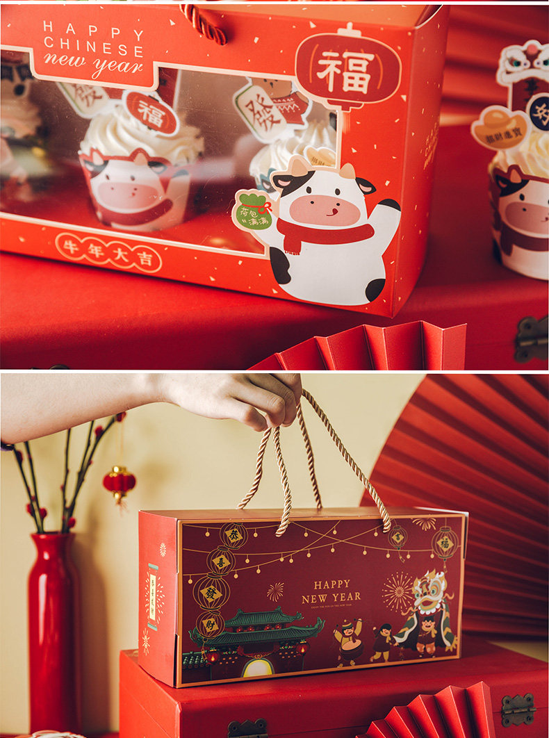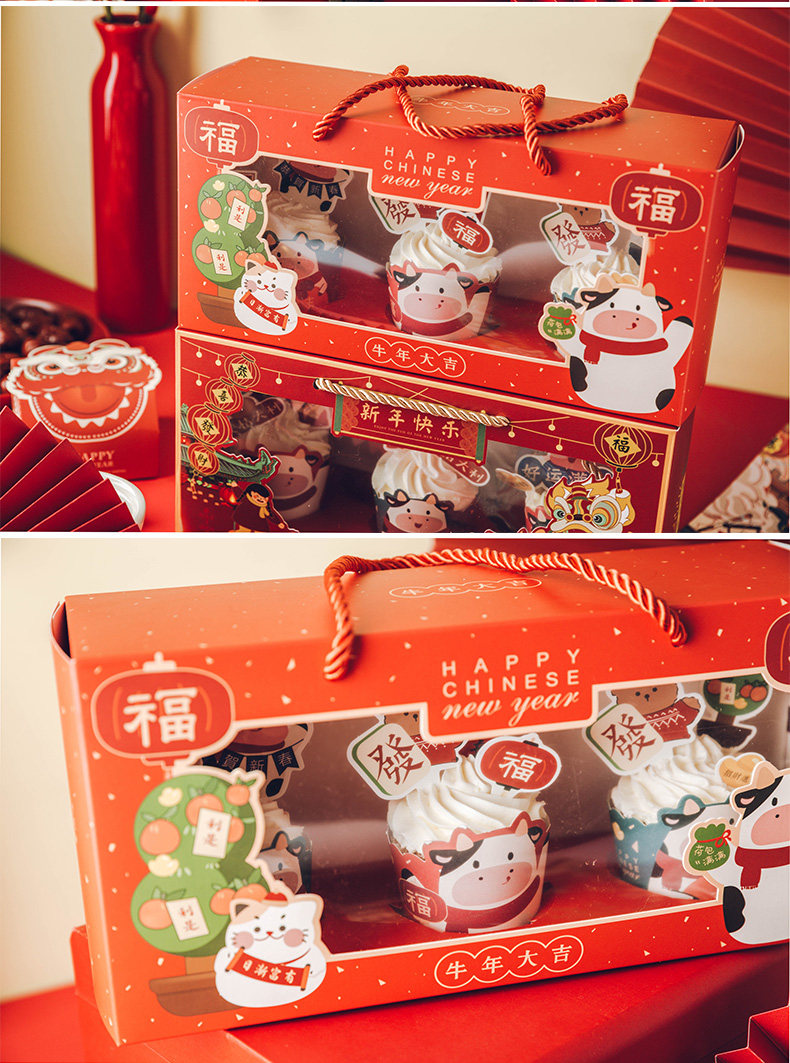 Новая годоватая бумажная чашка для торта упаковочная коробка весеннее фестиваль Открытие окна Маланс Кубок Снежокка хрустящая печь для разрыхли