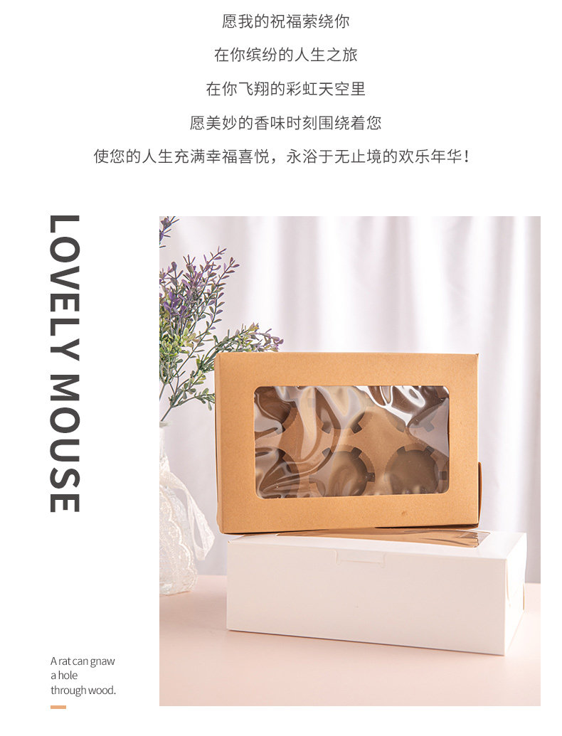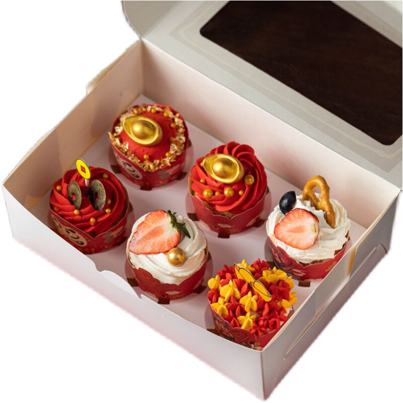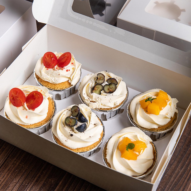Бумажная чашка для торта упаковочная коробка прозрачная упаковка бумажная чашка Xuemei Maiden Box 4 зерна из 6 зерен мафен -чашки для упаковочной коробки десерта