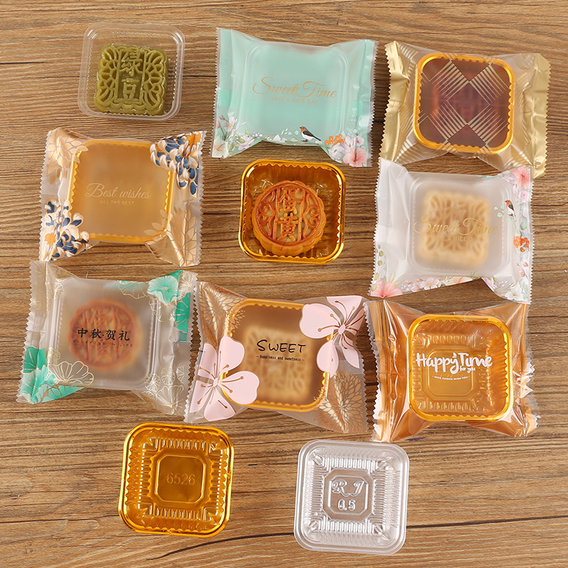 Ледяная кожа Луна торт 50 Прозрачный 75 середина фестиваля фестиваля 100G Машина для герметизации с высоким яичным желтком хрустящей коробкой для яичного желтка