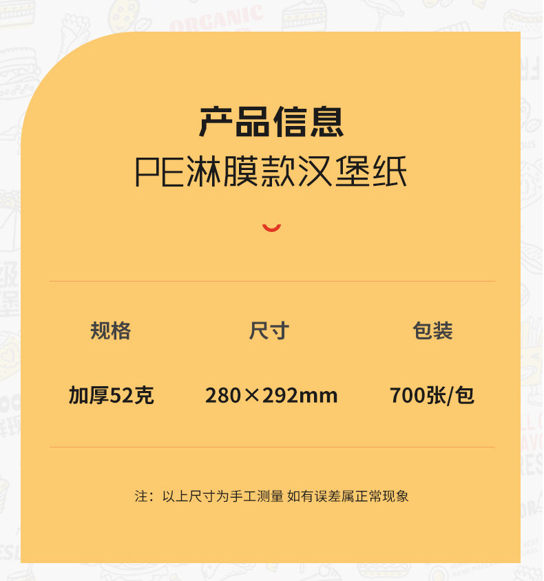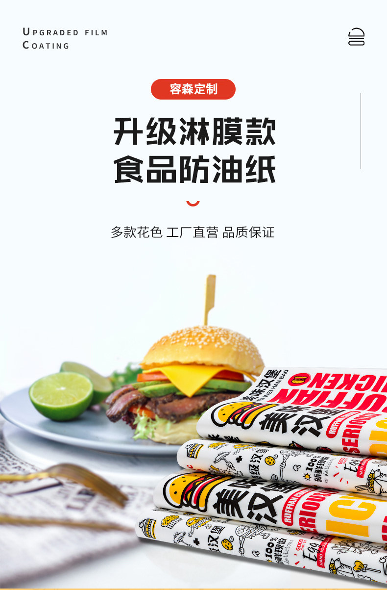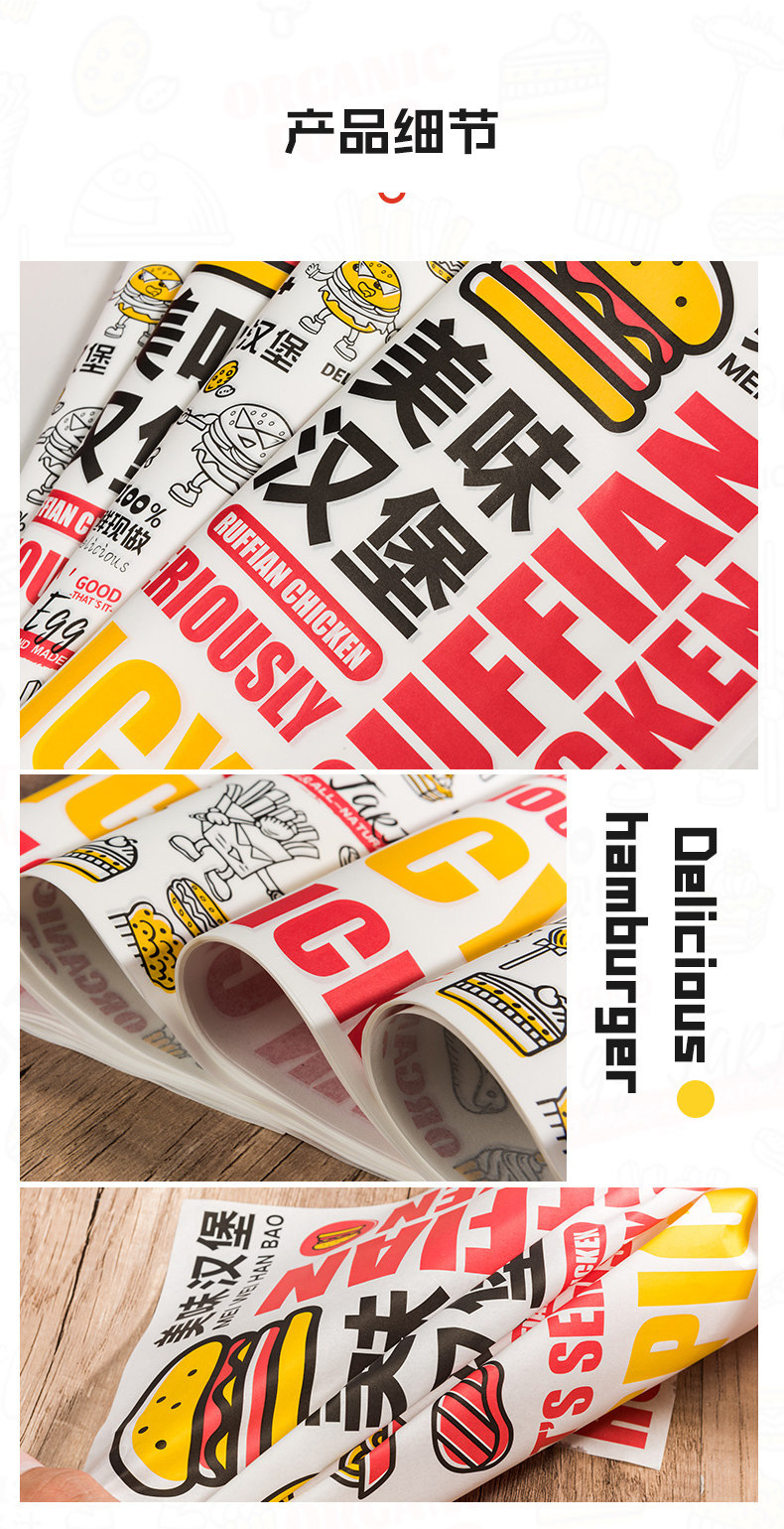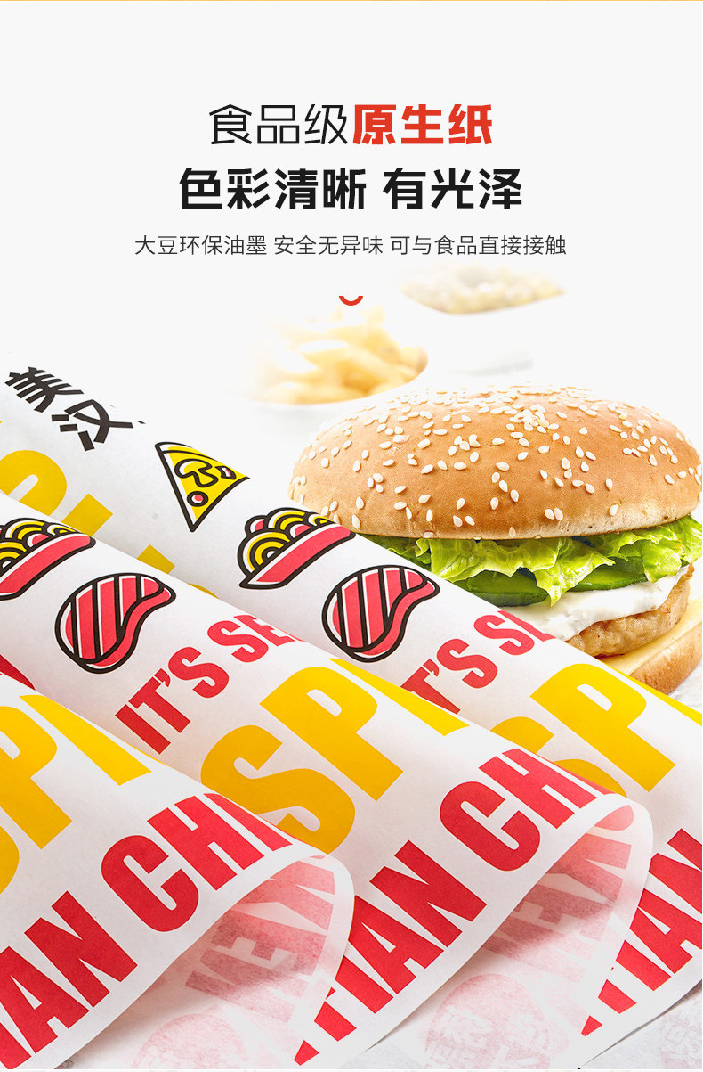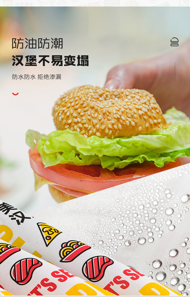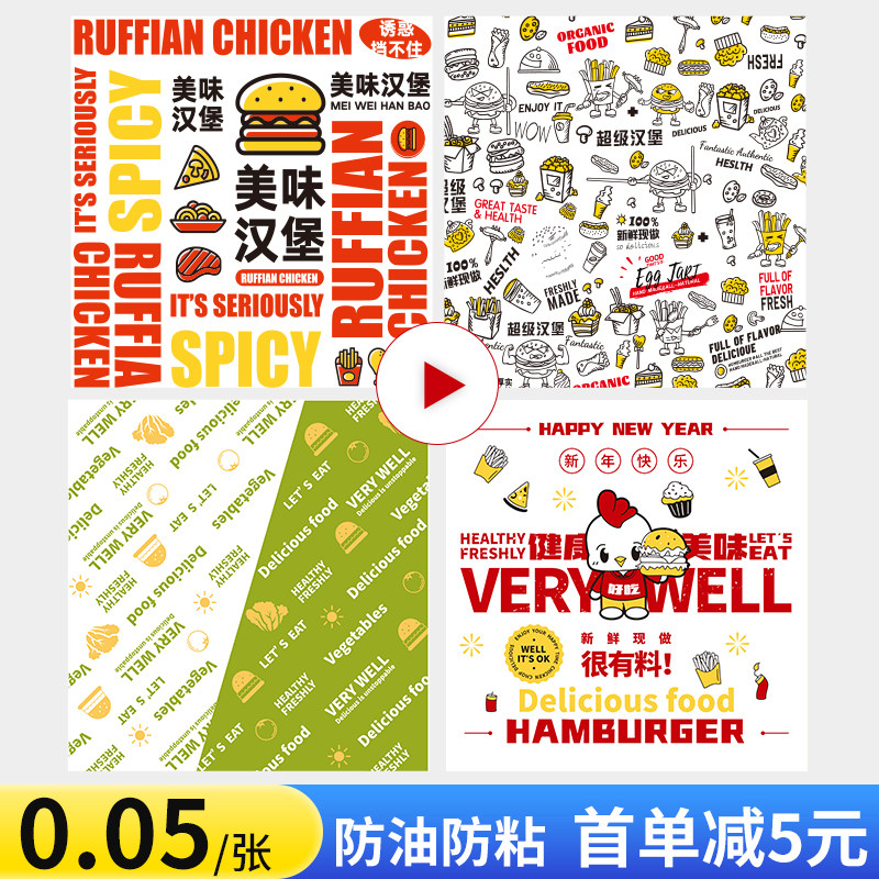 Упаковка для бургера бумаги Бургер бумажный масло -надежная бумага одноразовая коммерческие сэндвичи с песчаным тортом рисовый шарик