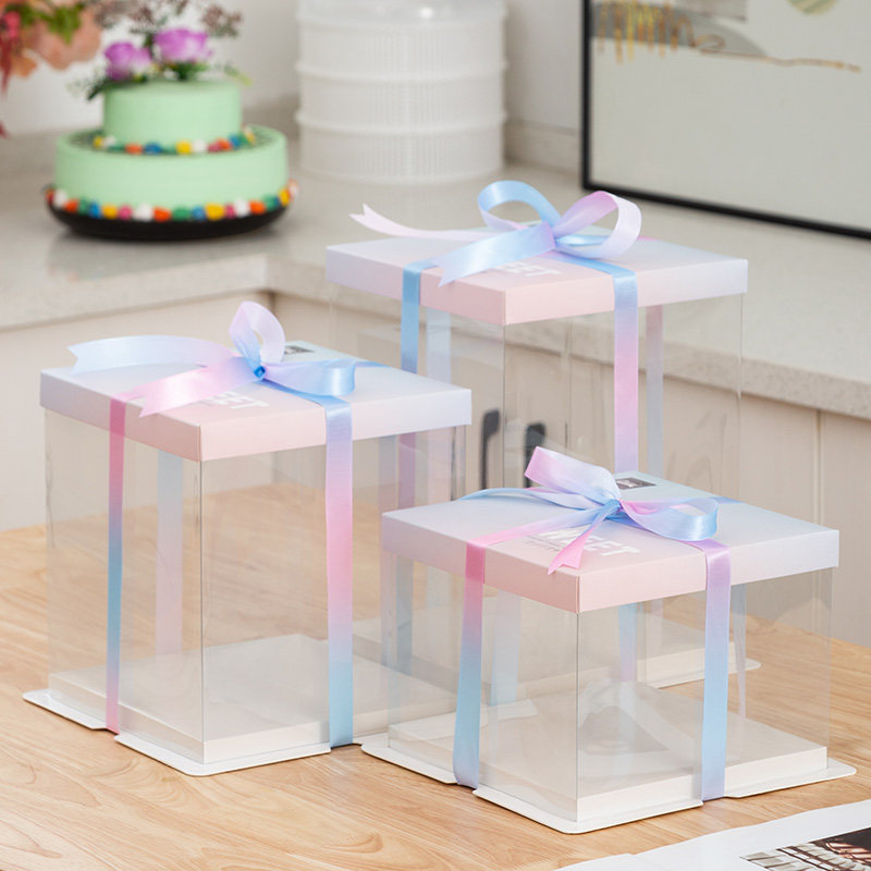 Прозрачная коробка для пирога 6 8 10 дюймов 12 пирожных коробки для выпечки бумаги квадрат плюс ручная подъем