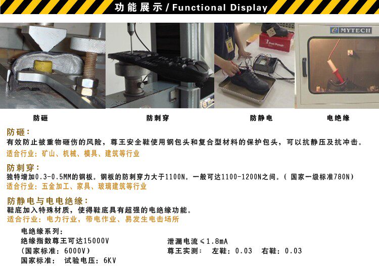 “Король”Четыре основные функции и основные функции безопасности обуви описаны следующим образом: