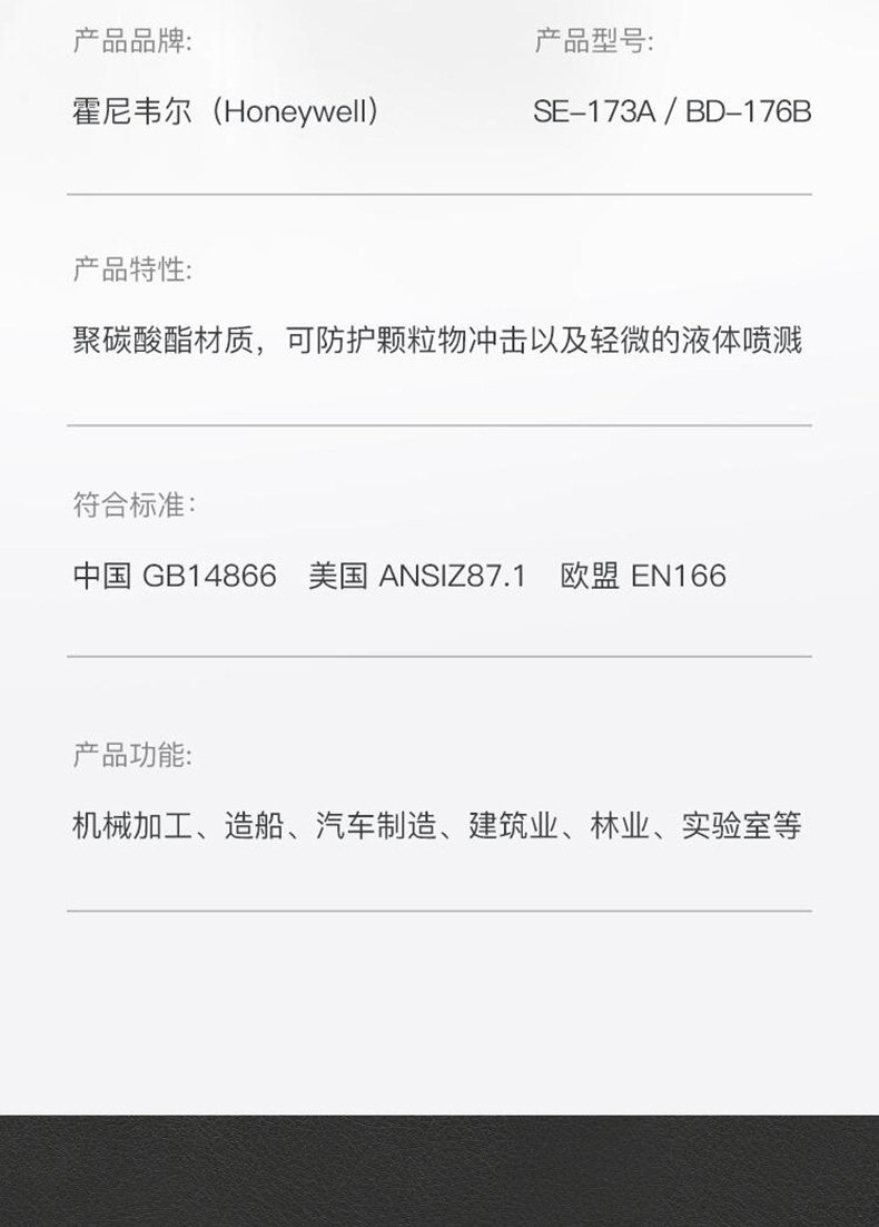 Honeywell Honeywell Se-173A Ударопрочная маска Прозрачный Bd-173B Защитный козырек Bd-176B