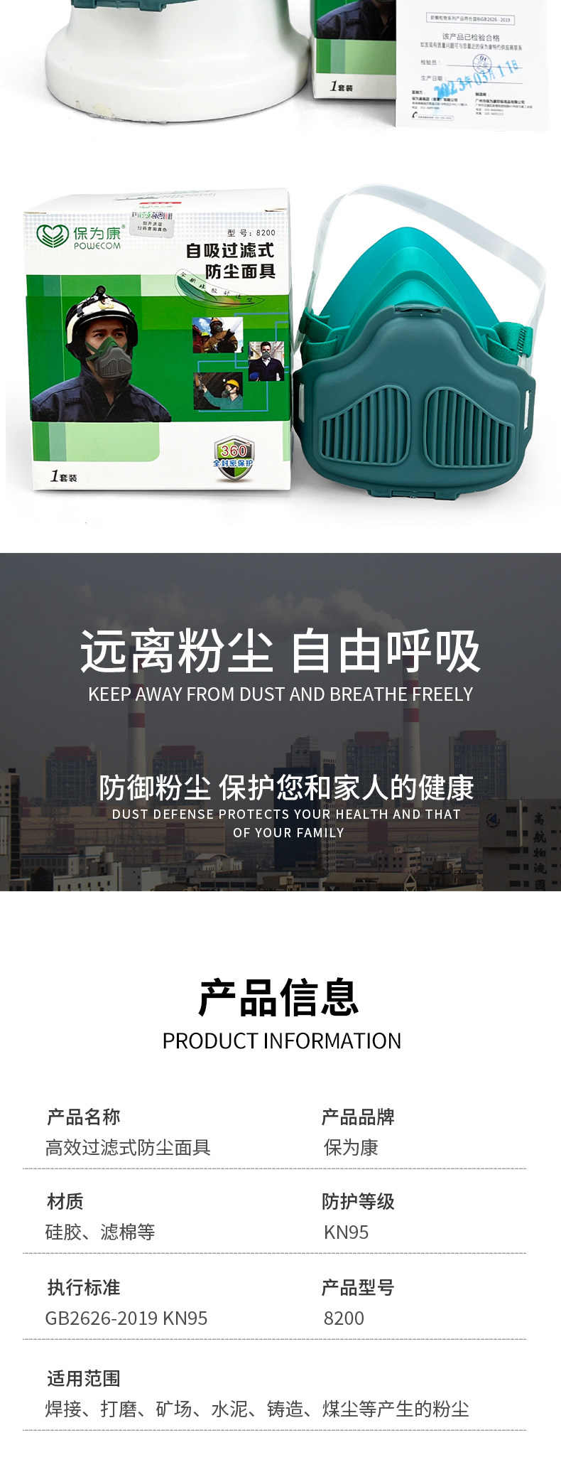 Baowei Kang 8200 Силиконовая пылепроницаемая маска антипромышленная пыль сварки