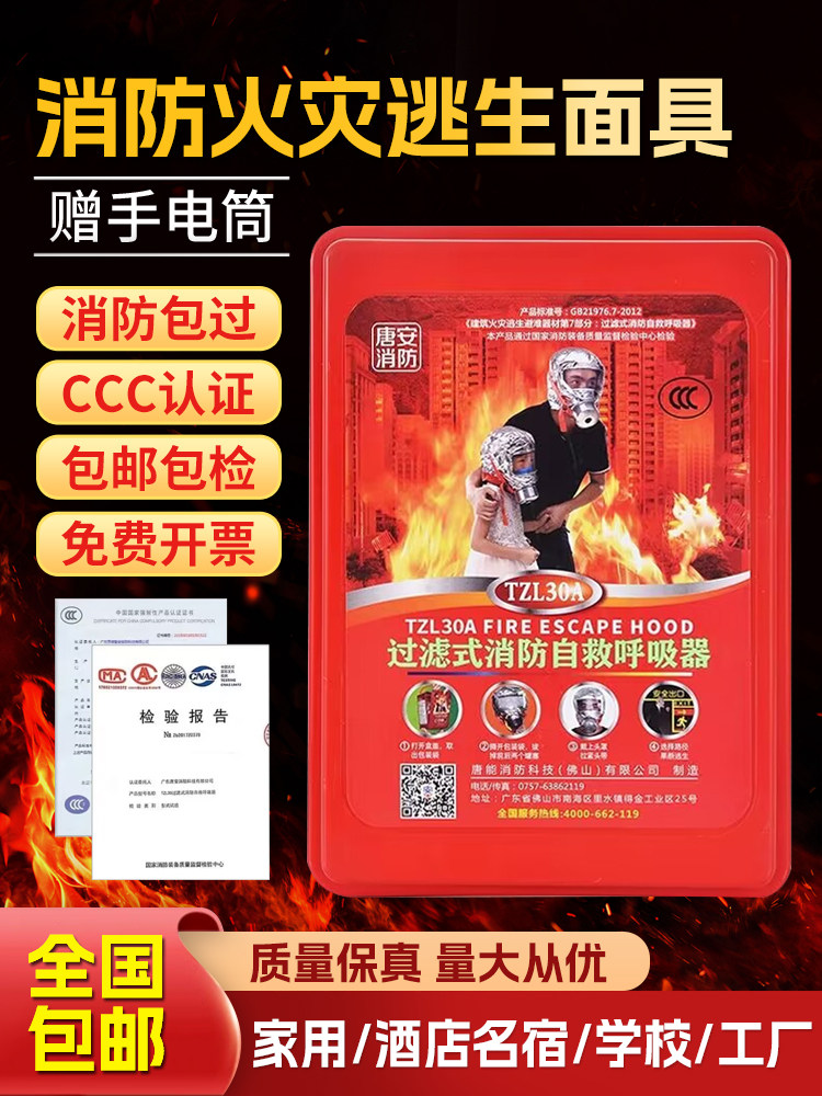 Пожарная маска 3C Сертифицированная анти -вирусная профилактика дыма маска самостоятельно респираторное побег защита от отеля отель