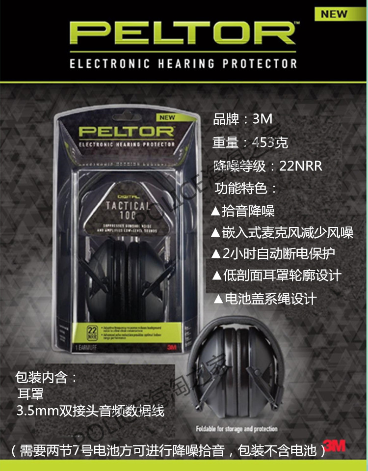 Тактические защитные электронные наушники, 3м, 100 выстрела