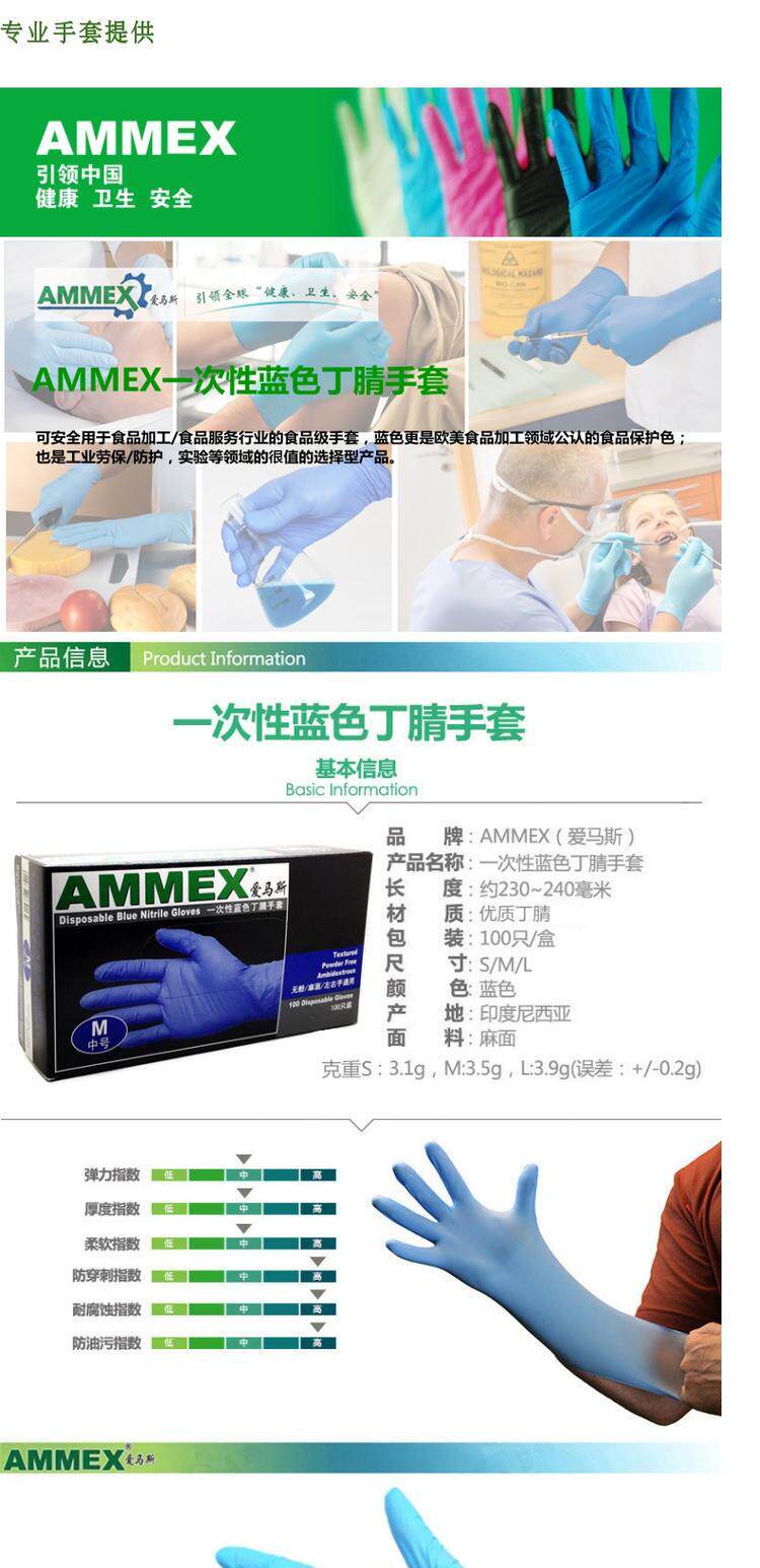 Бесплатная доставка Ammex Herma Bar Ding Gloves Промышленные домашние продовольственные продовольственные перчатки сорок трудовых перчаток 50