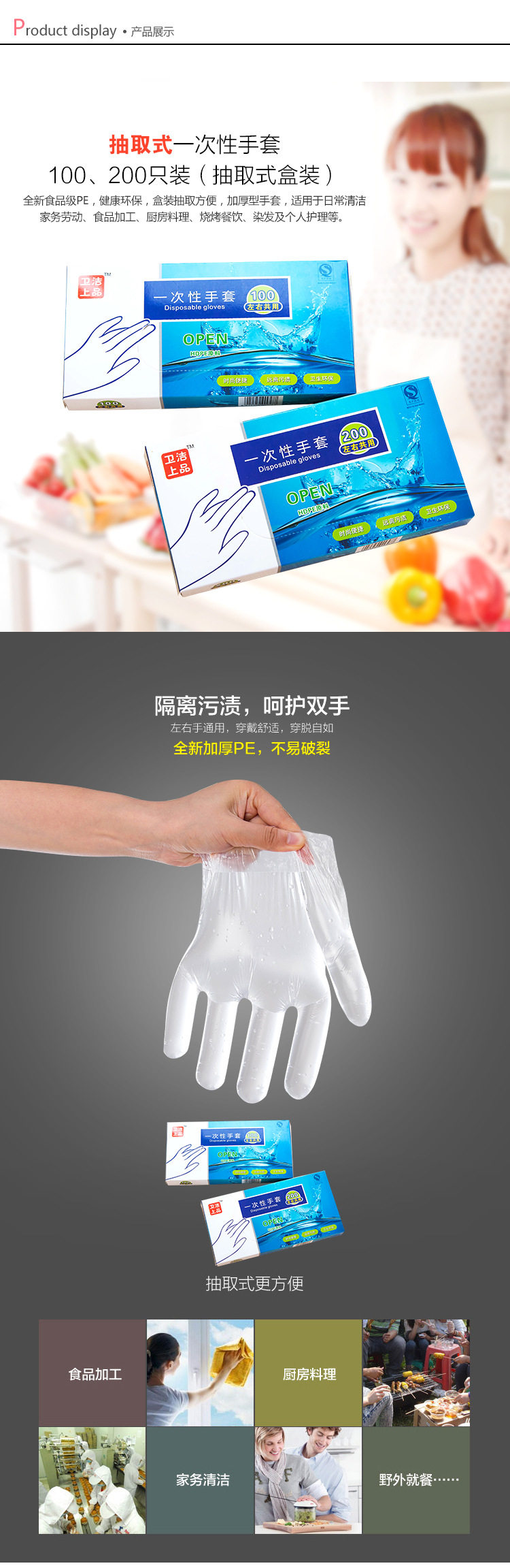 Одноразовые перчатки, прозрачная пластиковая маска для рук, увеличенная толщина