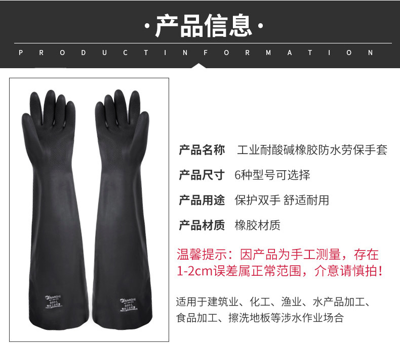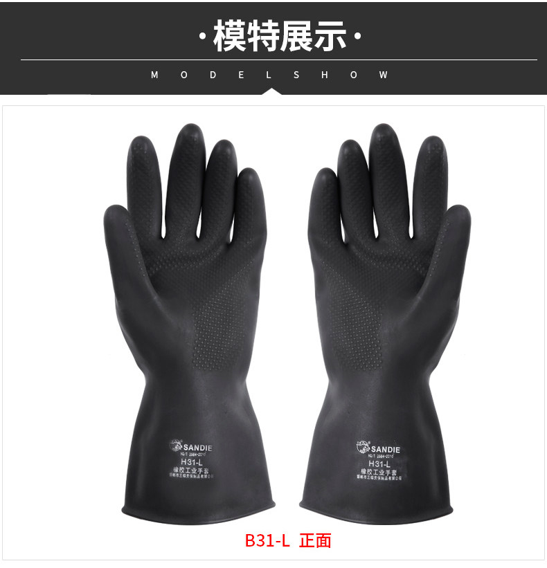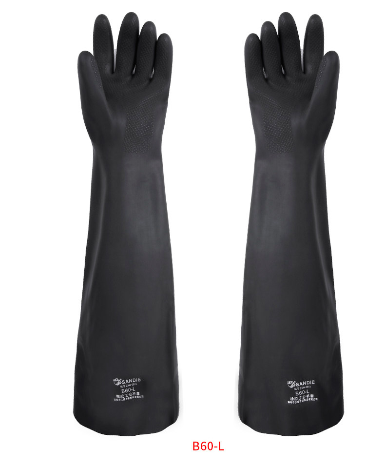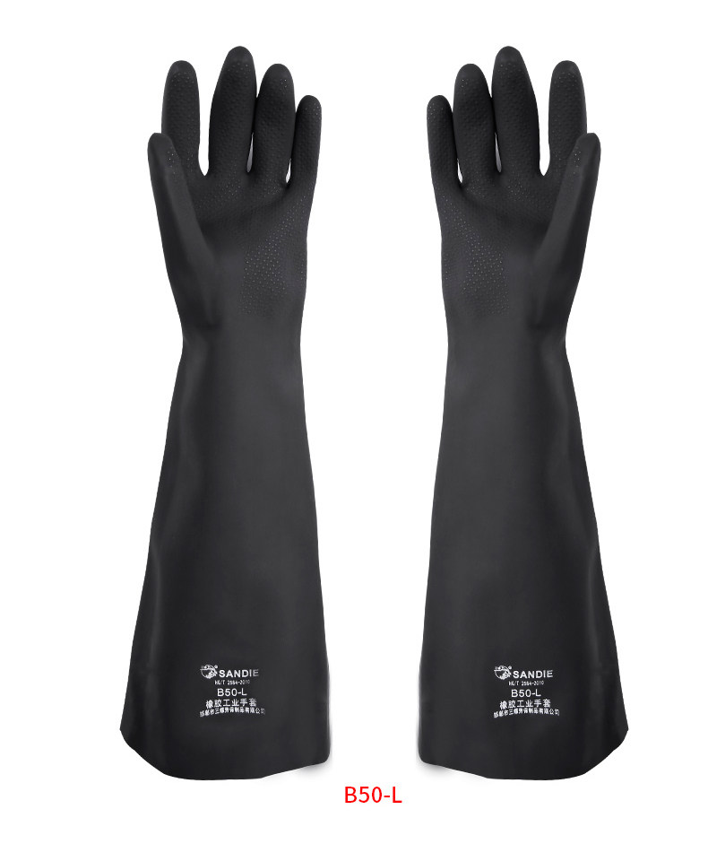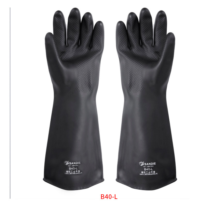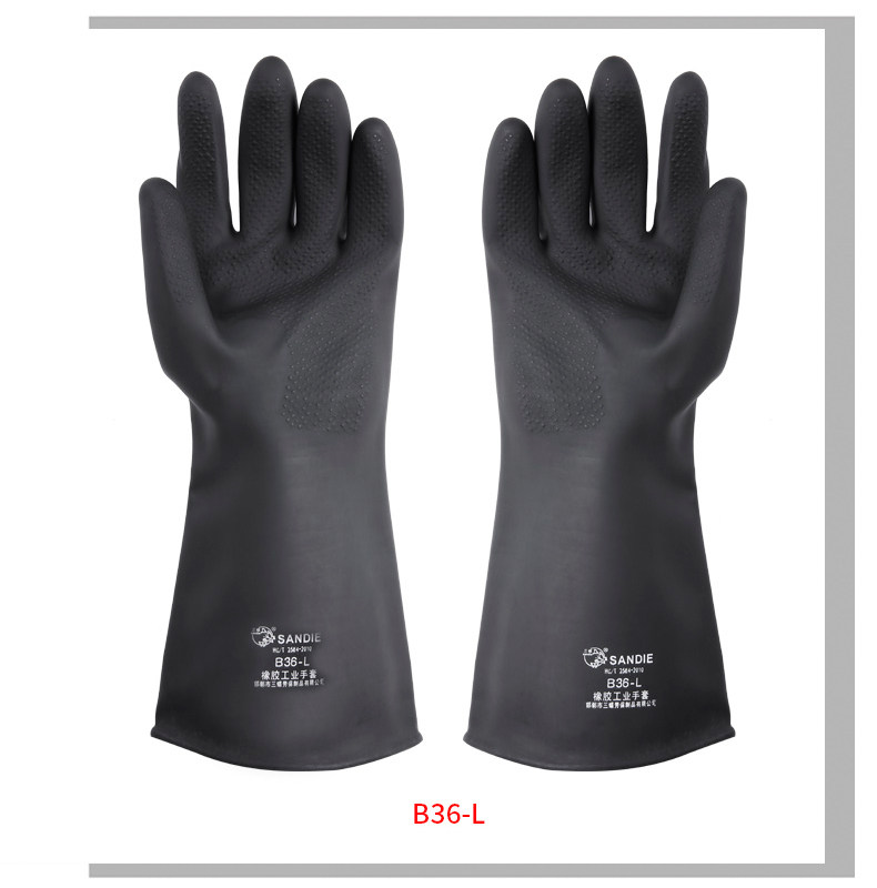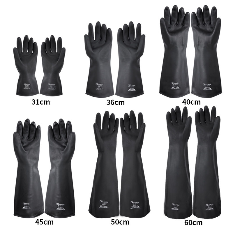 三蝶 Кислотно-щелочные черные длинные нескользящие водонепроницаемые износостойкие резиновые перчатки