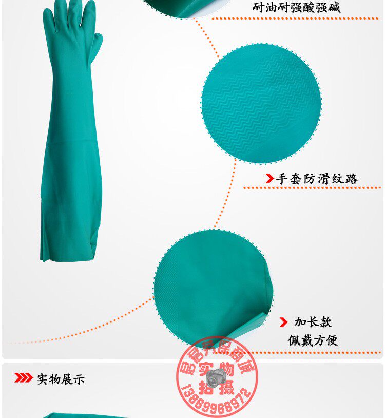 [加长60CM耐溶剂手套 高性能防化学品丁腈手套 劳保耐油工业手套]