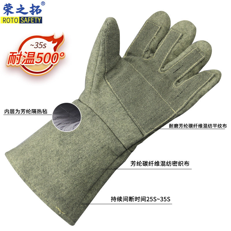 Rongzhi Tuo 1000 градусов высокая температура, устойчивая к высокой температуре с высокой температурой, изоляционные перчатки против промышленной печи, литье алюминиевая фольга против печь S537 без пыли.