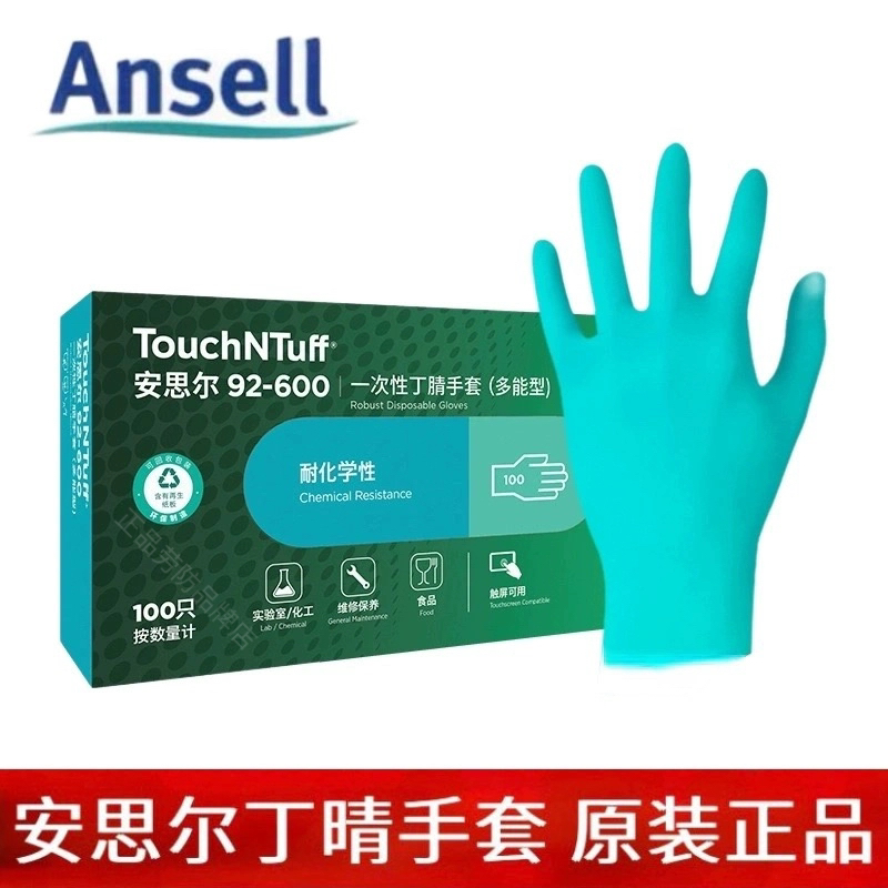 Одноразовые перчатки из нитрилового каучука Ansell 92-600. 92-670 маслостойкие, кислото-щелочестойкие, химически стойкие и устойчивые к проколам.