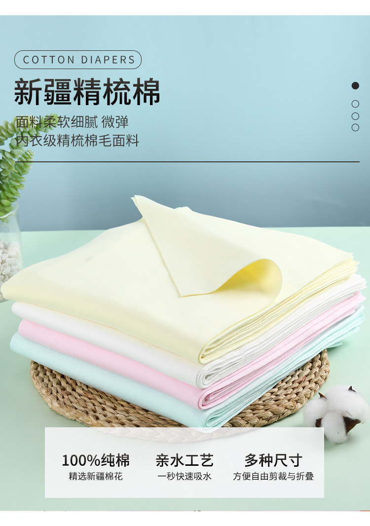 Подгузник представляет собой ткань из хлопковой иглы.Размер разреза составляет 45*50 см, подходит для 0-6 месяцев.50*60 см. Подходит для 0-18 месяцев, ребенок
