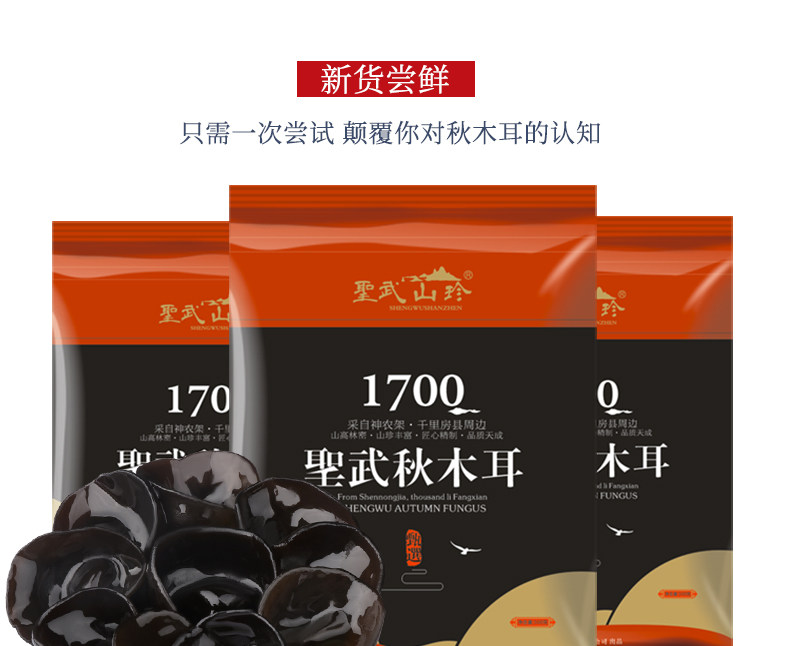 圣武山珍 Шеннонг Фангфанг округа Черный грибок Осенний гриб, без корневого мяса, не -северо -восточный черный гриб.