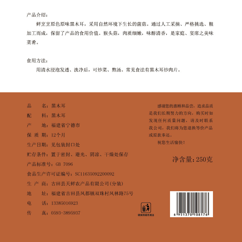 Северо -восточный черный гриб 250 г сухие товары Специализированные сухой грибок черный гриб густой гриб гриб гриб