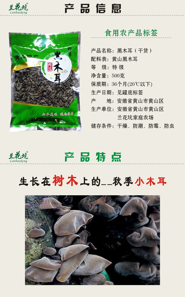 Huangshan Black Grins Dry Goods 500 г мешки загруженной маленькой миски с маленькой миской ушной уш