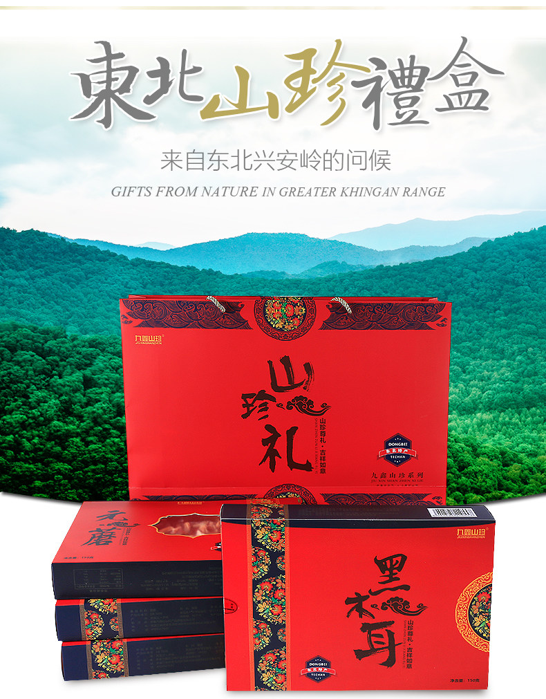 Jiuxin Northeast Tu Специальные сухие товары Подарочная коробка Комбинация Шанчжэнь сухая бактерия подарочная коробка новогоднего подарка северо -восток четыре сокровища