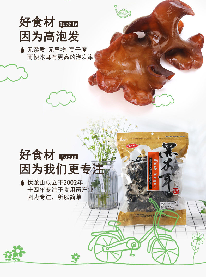 伏龙山 _Maee Fungus 300G Shennongjia Specialty осени сухой груз округа Белый -Без ухой из черного дерева Бесплатная доставка