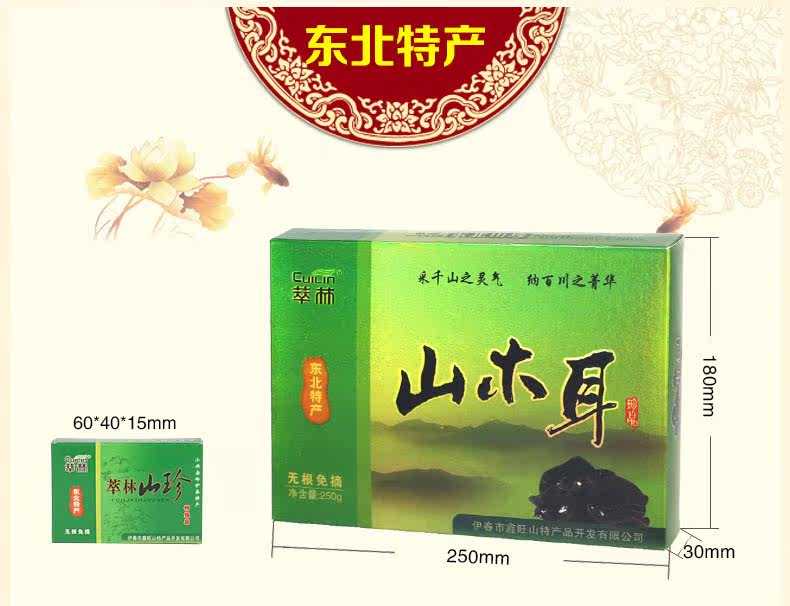 萃林 Черный гриб осенний гриб северо -восток Специальности Сжатый гриб 250 грамм зеленого золотого ящика