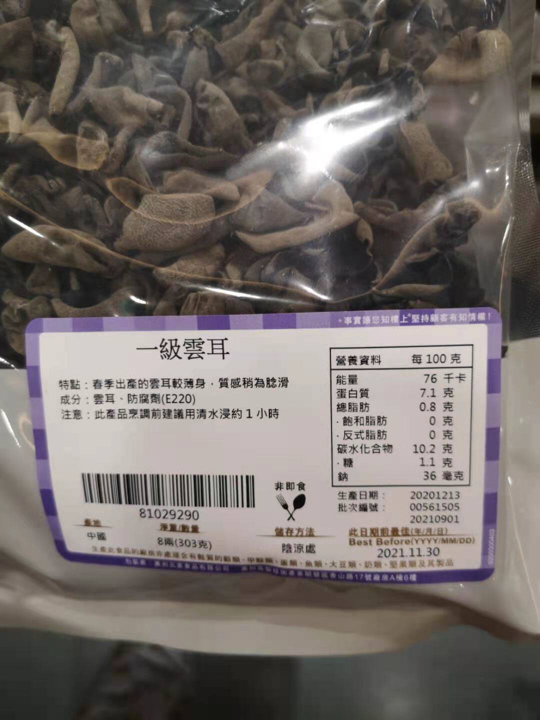 Купить первый уровень Гонконга наверху Юнер 303 грамма черного гриба увлажнен