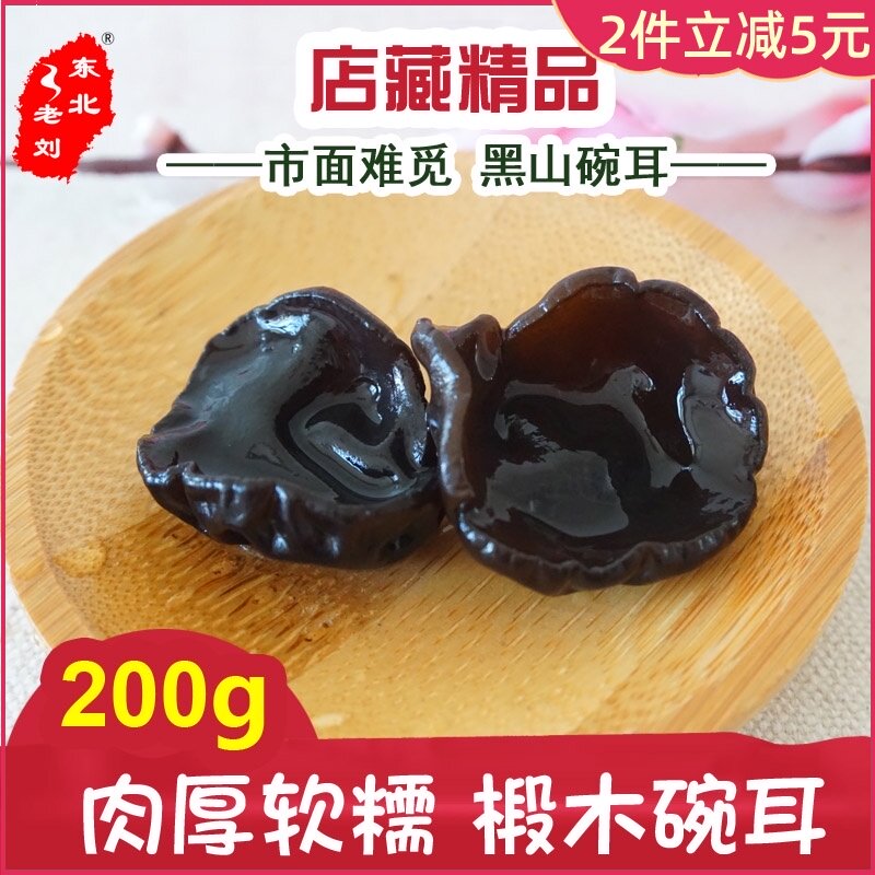 Северо -восточный бутик Lao Liu. Небольшая миска с маленькой миской ухо 200 г Чанбай Маунтин Специализированность Небольшой осенний ухо дикие черные грибки сухой товары