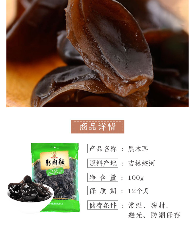 新闽融 Черный гриб 100G*2 Северо -восточный Huangsongdian Specialty Выбранный сухой товары сухой древесина Мясо Мясо мягкое и восковое 200g