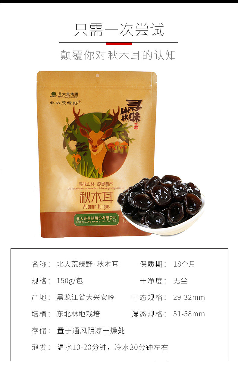 北大荒绿野 Осенний гриб на северо -восток специальные продукты Юн эр Шанчжэнь сухой товары Даксганлинга Лесная земля Осенний гриб 150G