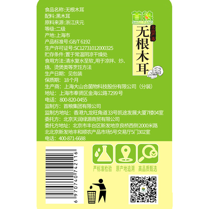 首粮 Бочка без корней Черный гриб 120G Одиночный продукт и выбор ручной работы грибов с сокровищами сухих товаров сухие бактерии