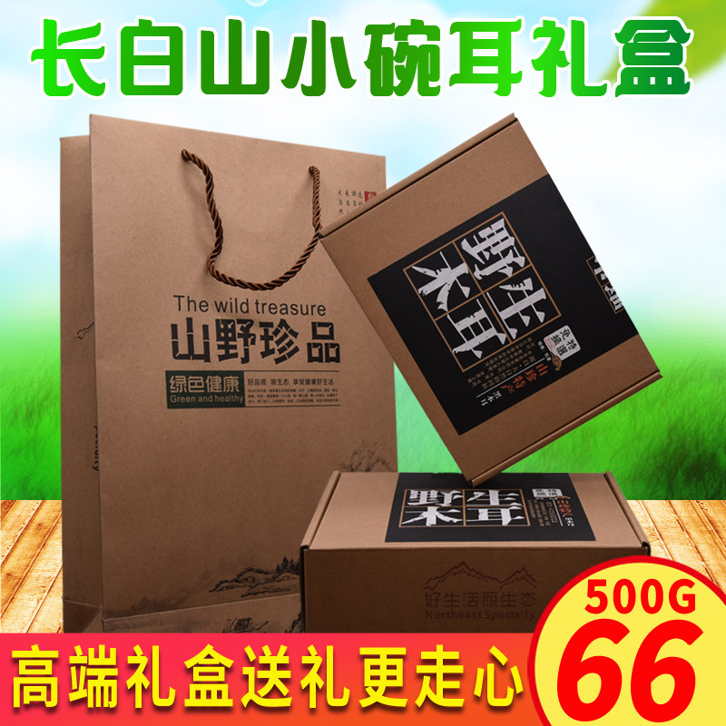 Северо -восточный черный грибок сухой товары подарочная коробка Changbai Mountain Wild Special Bowl с небольшим миском полюсного уша 500 г подарочные коробки с сумочной сумкой
