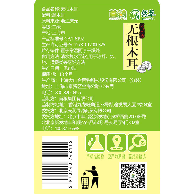 首粮 Сухой бактерии сухой груз черный гриб 120g*1 одно ведро без судоходства бактериальные грибы съедобные гриб