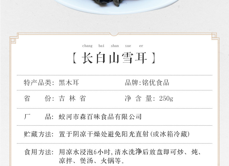 铭优食品 Северо -восточные специальные продукты черная гора черные грибки снежные ушные бутылки загруженные осенние гриб