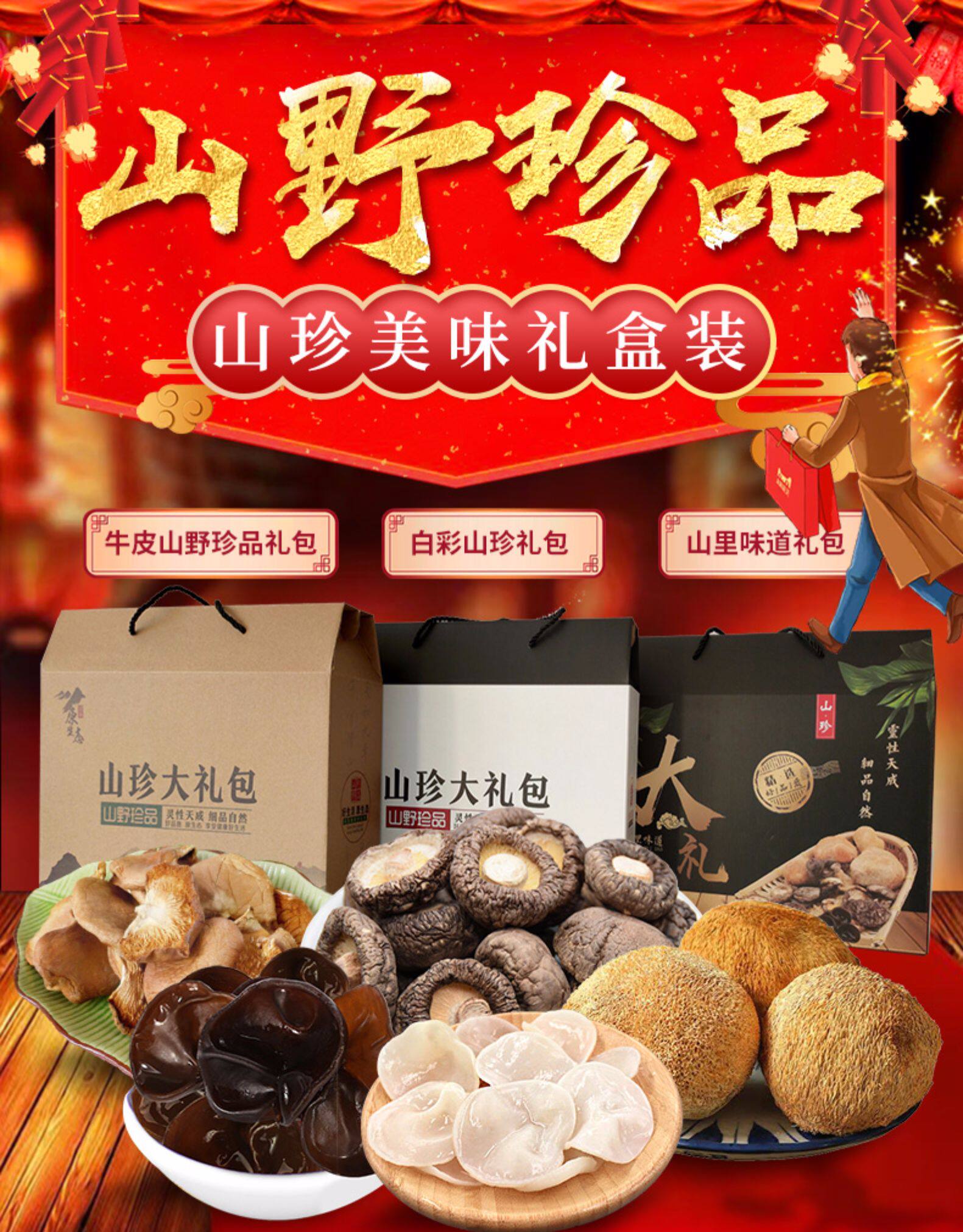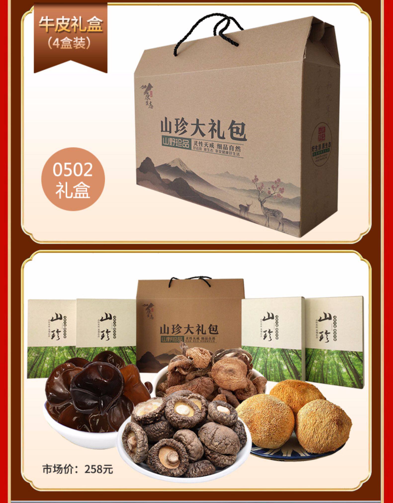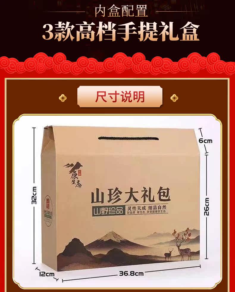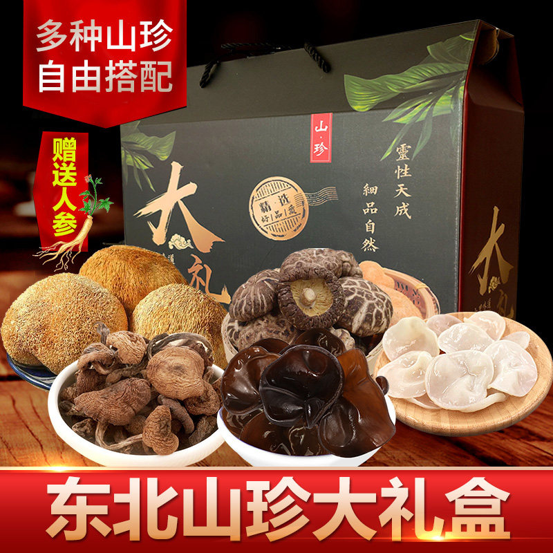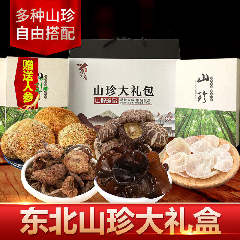Новогодний подарочный пакет на северо -востоке сухой грузовой гриб гриб грибная горная подарочная коробка Комбинирование не специфические дикие бесплатные подарки по доставке