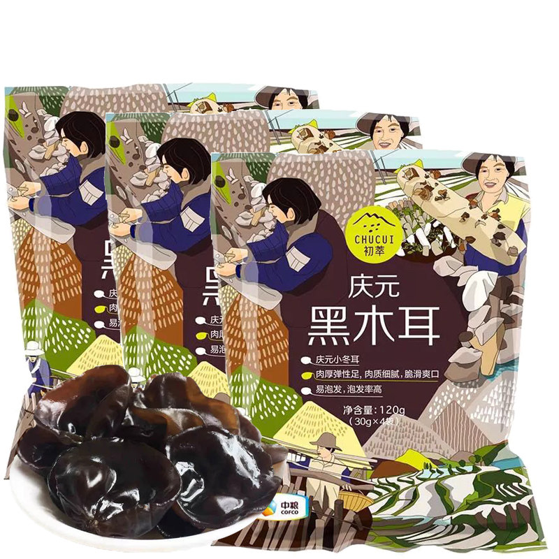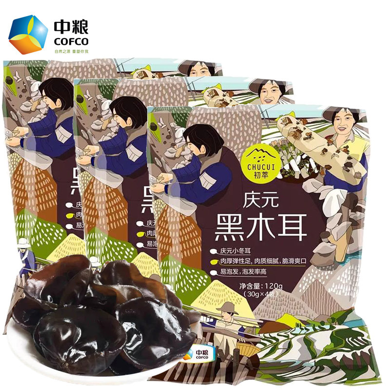 Cofco Chu Cui Qingyuan Black Frangus 120G*3 пачки съедобных бактерий небольшая упаковка гриб