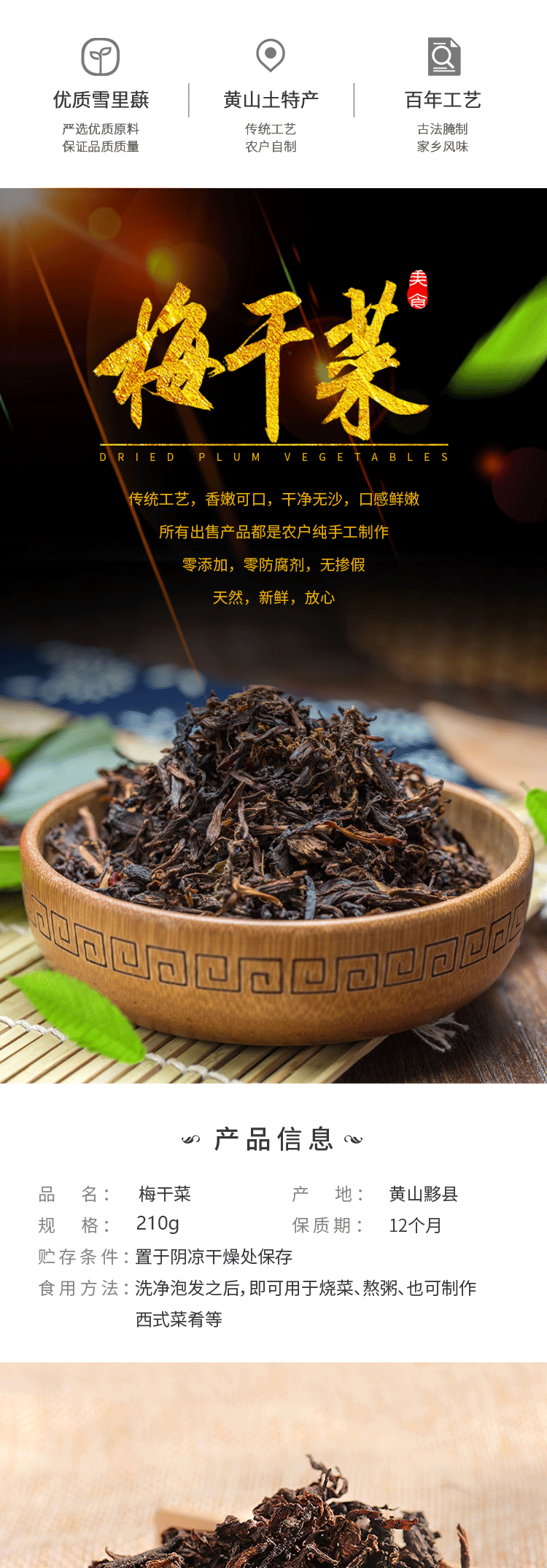 Аутентичные Anhui Huangshan Special Products Mei высушенные торт торт избитый мясо мясной сан -создание Satware 500G