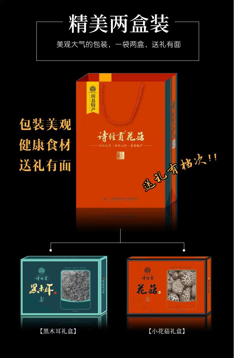 诗经贡 Shanzhen Fangxian Special -products Высушенные подарочные коробку Сумка подарки подарки 700 грамм черного гриба шиитаке грибы