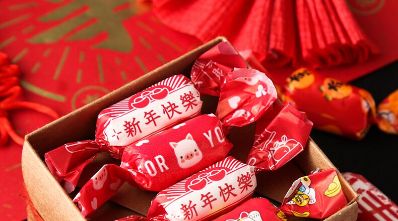 Новый год Nougat Package Paper Spring Festival Sugar Paper, конфеты смешанная и сочетая творческая бумажная говядина галстук сахар