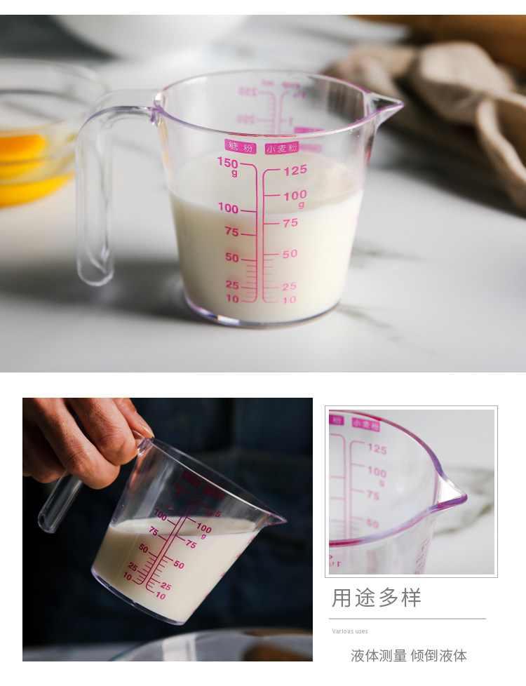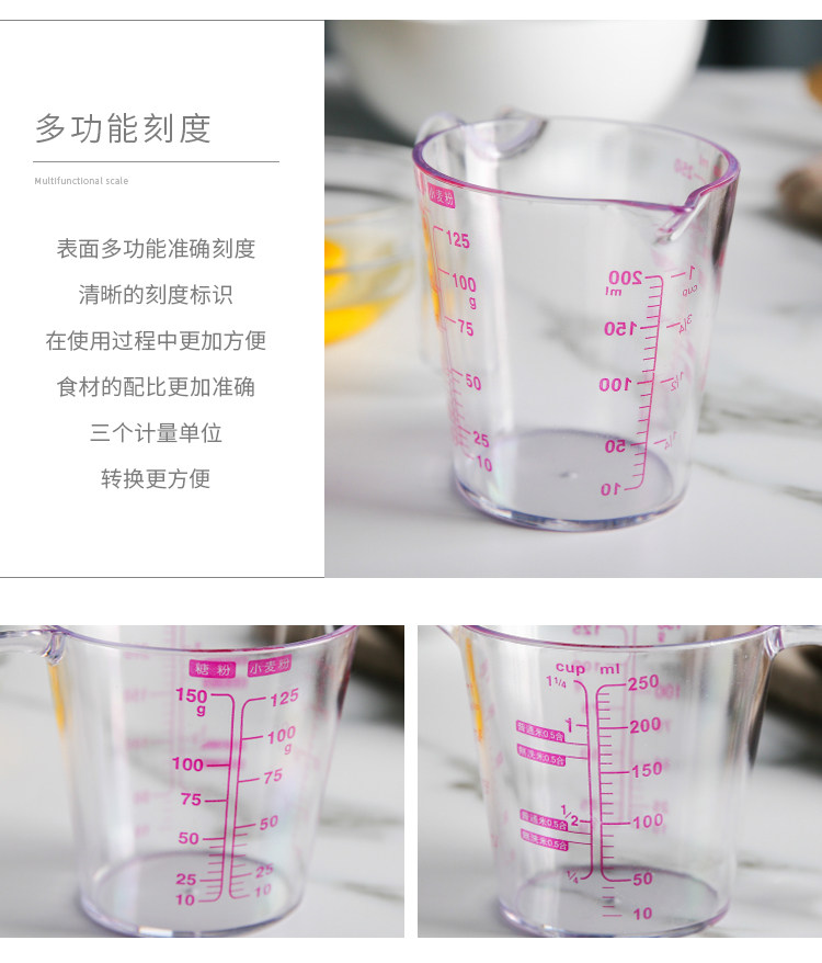 250 мл измерительной чашки с масштабным пластиковым измерением кухни жидкий молоко