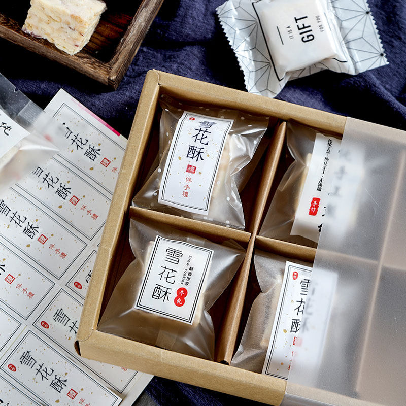 Упаковка, компактная прозрачная сумка, наклейка, коробка, со снежинками