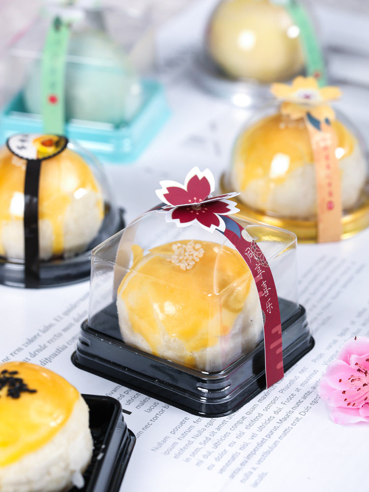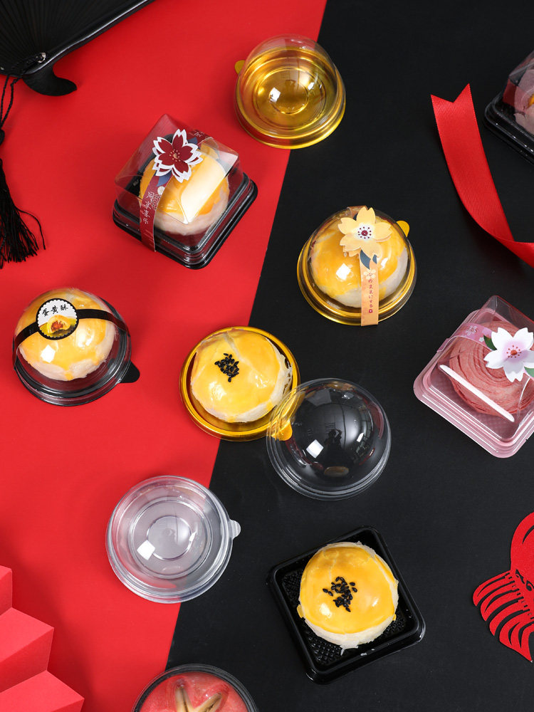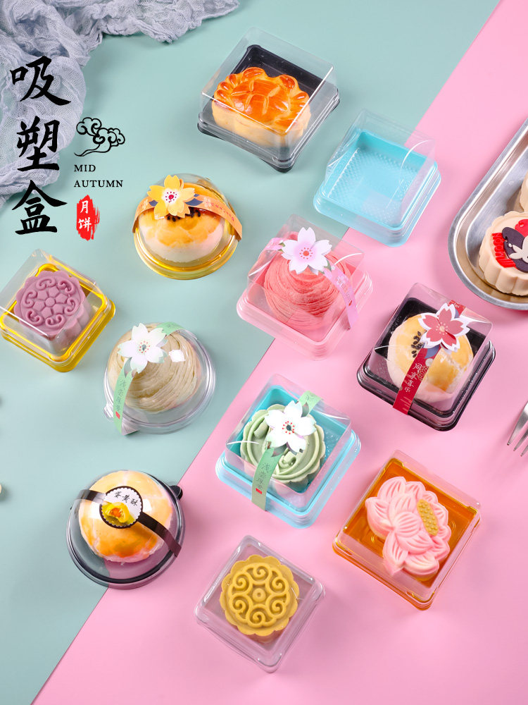 Прозрачный лунный пирог яиц желток хрустящая коробка пластиковая коробка соса